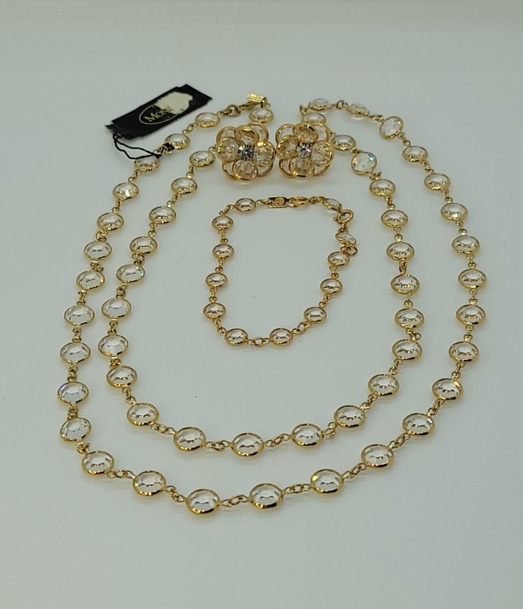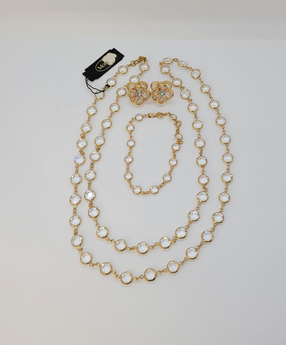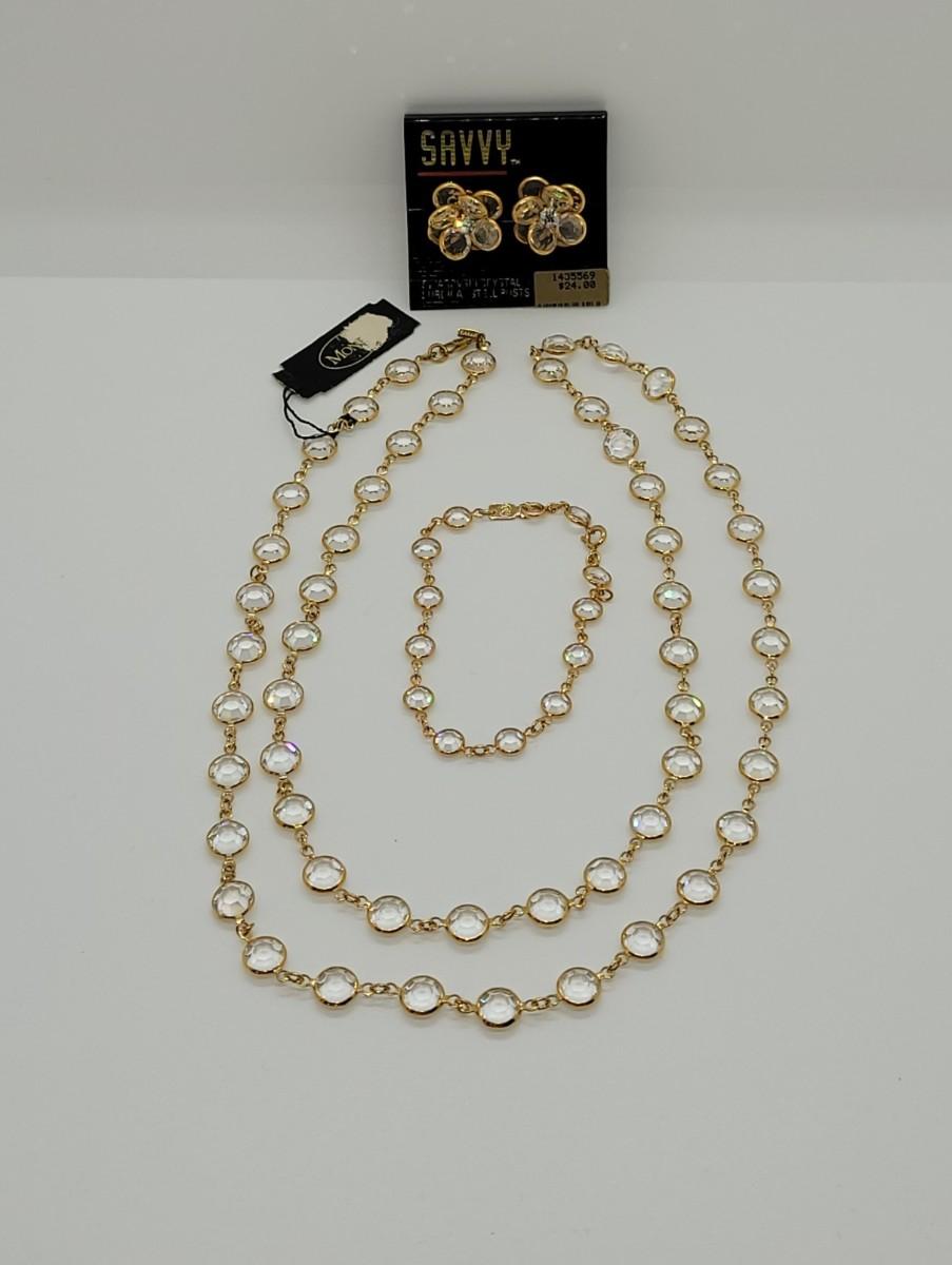 45: New Monet and Savvy Swavorski crystal necklace, bracelet and pierced earrings