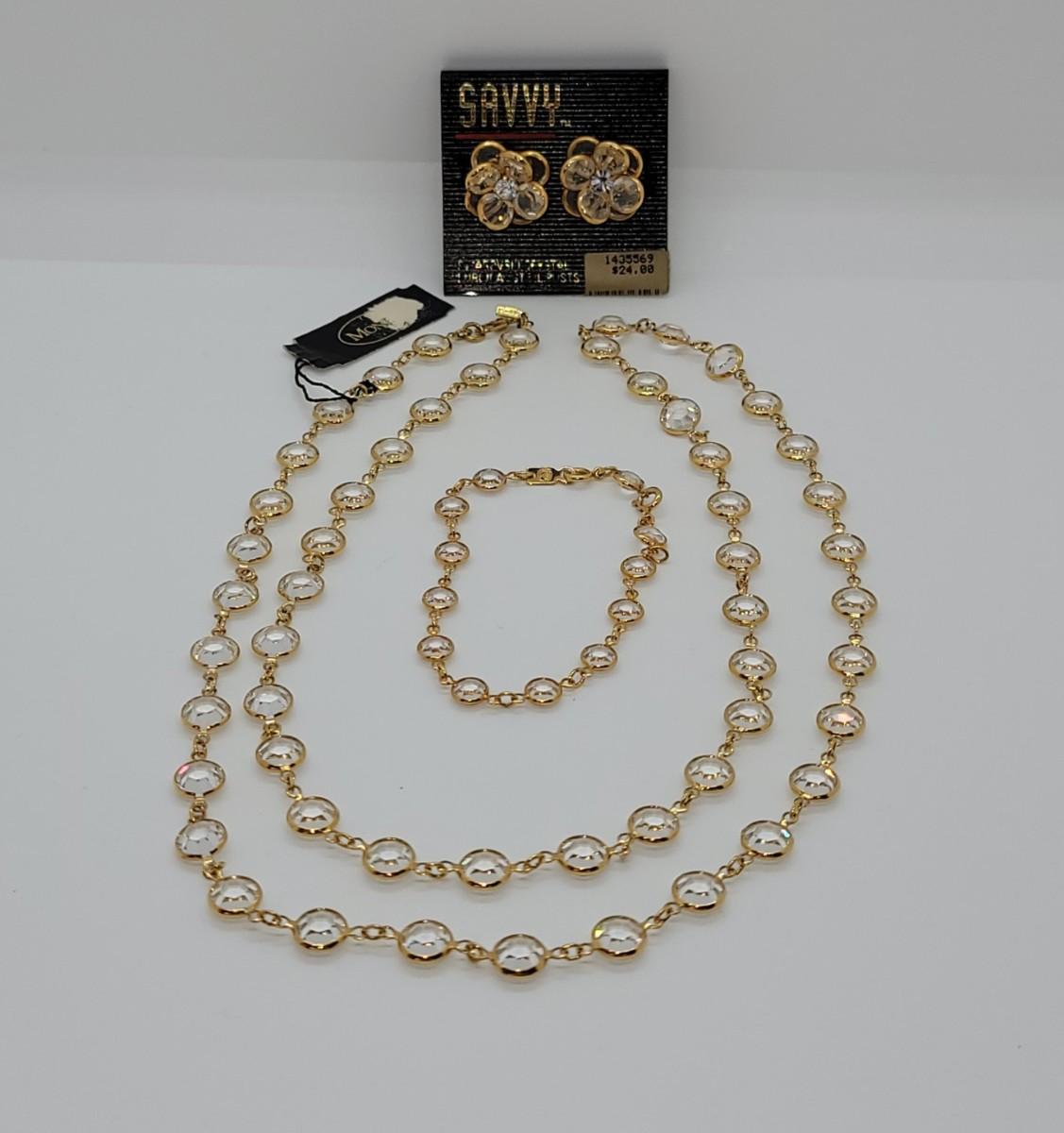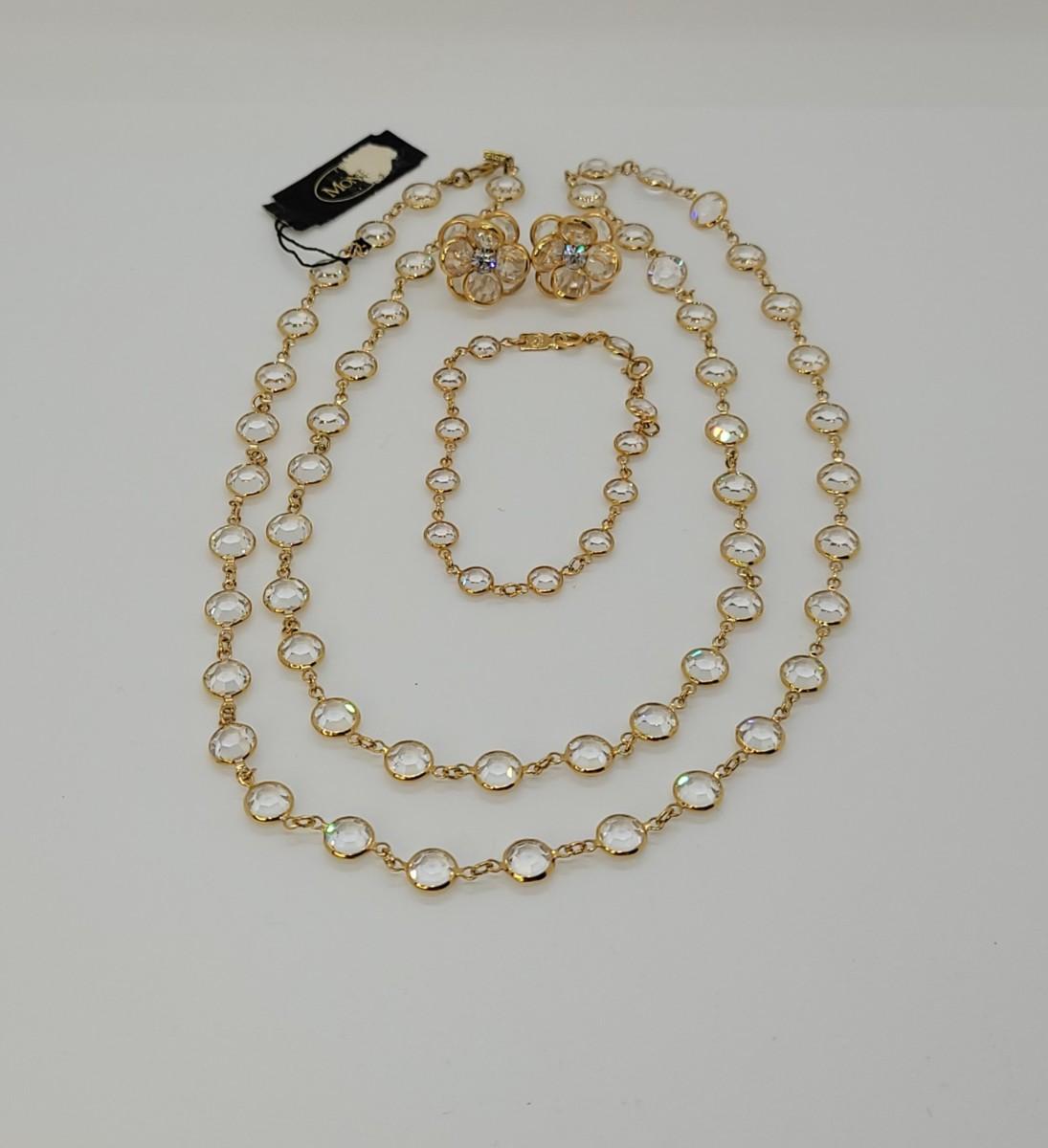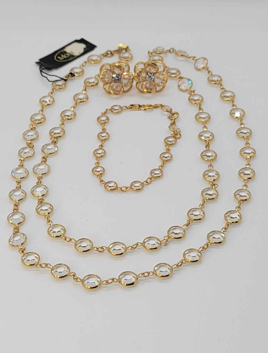 45: New Monet and Savvy Swavorski crystal necklace, bracelet and pierced earrings