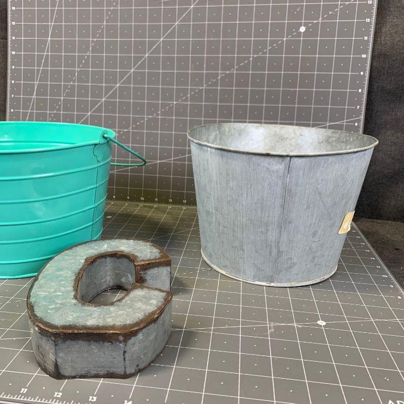#45 "Farm Fresh" Gardening Pail, Letter C Decor and Misc. Basket