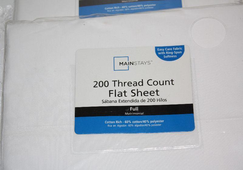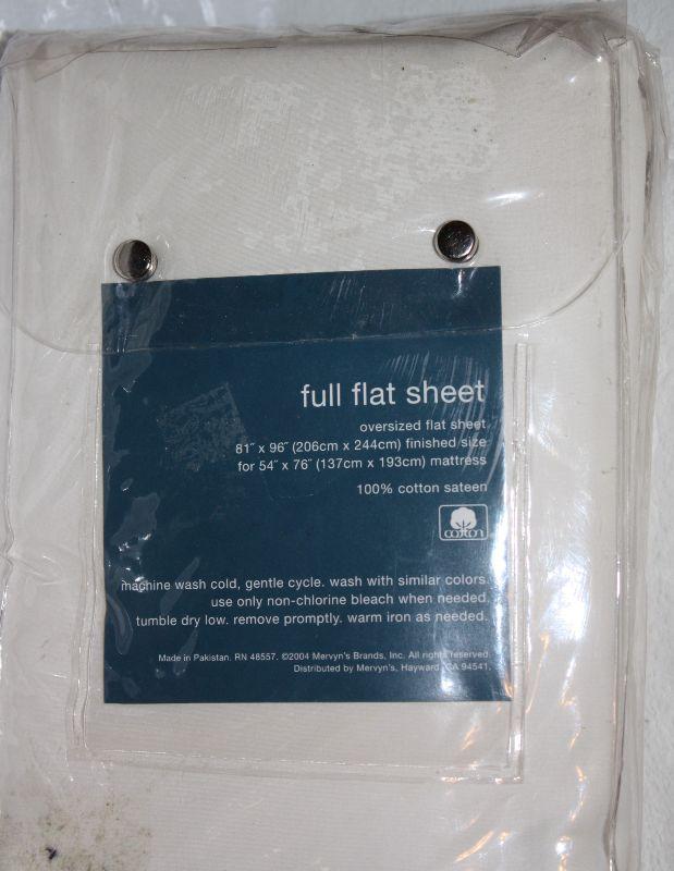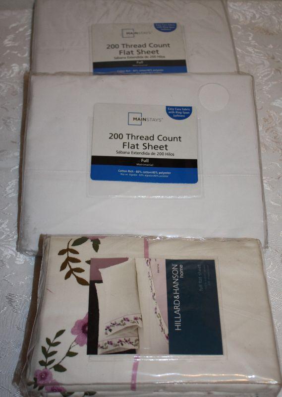 (1) Meryn's Hillard and Hanson full flat finished size 81"x95" , light beige; (2) Walmart Mainstays 200 thread count flat sheet finished size 81"x96", white