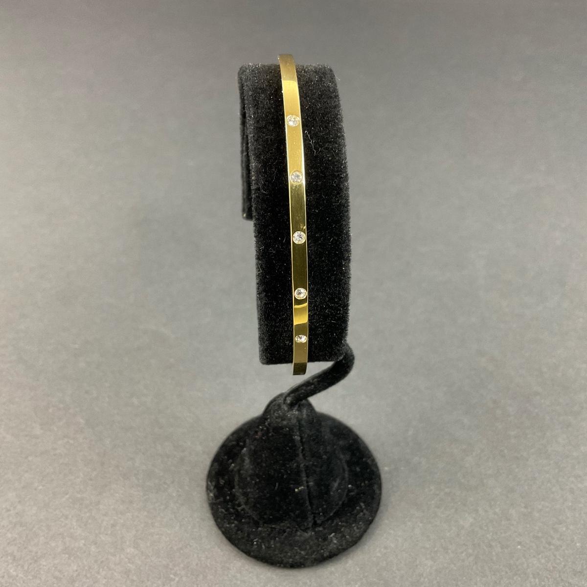One marked Michael Kors gold tone bangle with rhinestone accents. This piece is signed by the maker on the back. Please see photos for details and condition. Any condition statement is given as a courtesy to a client, is an opinion, and should not be treated as a statement of fact. Reference to condition written, oral or within a condition report shall not be regarded as a full account of condition and may not include all defects, alterations, or restorations. Absence of a condition report does not imply a lot is flawless or lacking imperfections or damage. Katherine’s Auction & Appraisal Service shall have no responsibility for any error or omission. Returns shall not be accepted on the basis of condition. ::: Shipping is available on this lot. If you require shipping you must let us know at the close of the auction. We will coordinate with you after the item has been won. Shipping fees will include insurance up to or exceeding the value of all items being mailed. If you have any questions regarding this lot please contact the auctioneer either via this website, by direct email or by phone. PICK UP TIMES and other important information can be found in the TERMS and DESCRIPTION of the auction. Please take a look for pertinent information. Thanks!
