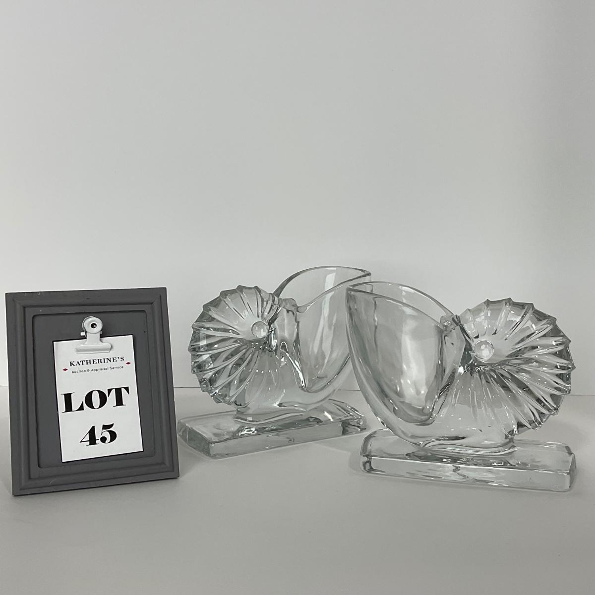 -45- NEW MARTINSVILLE | 1940’s Crystal Nautilus Sea Shell Bookends