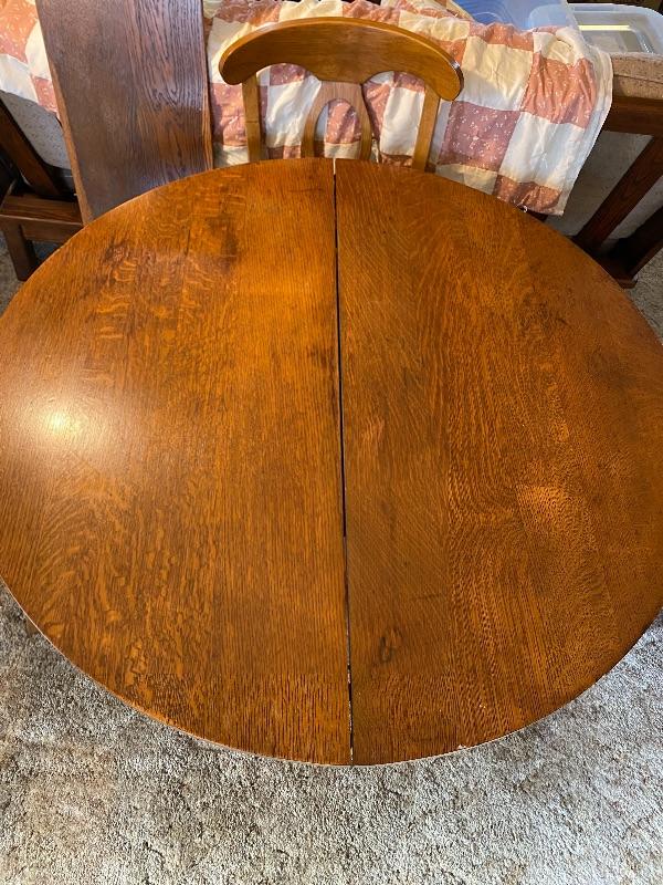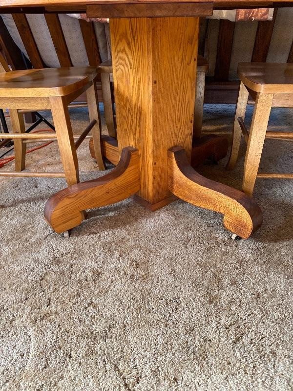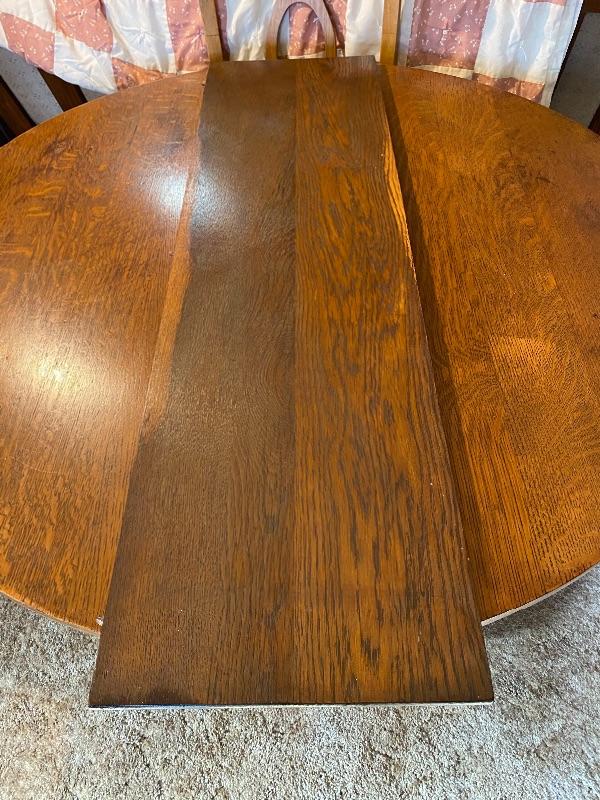 45” Round Oak Pedestal Table w/4 Chairs 12” Leaf