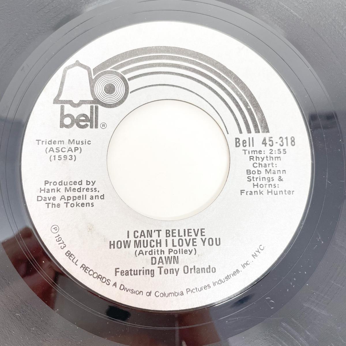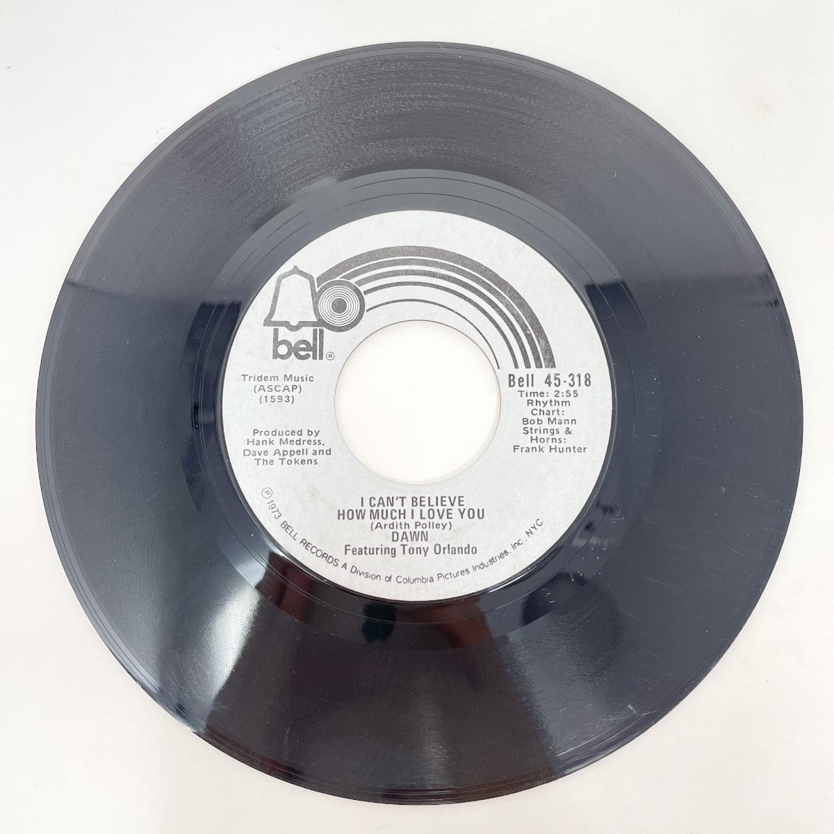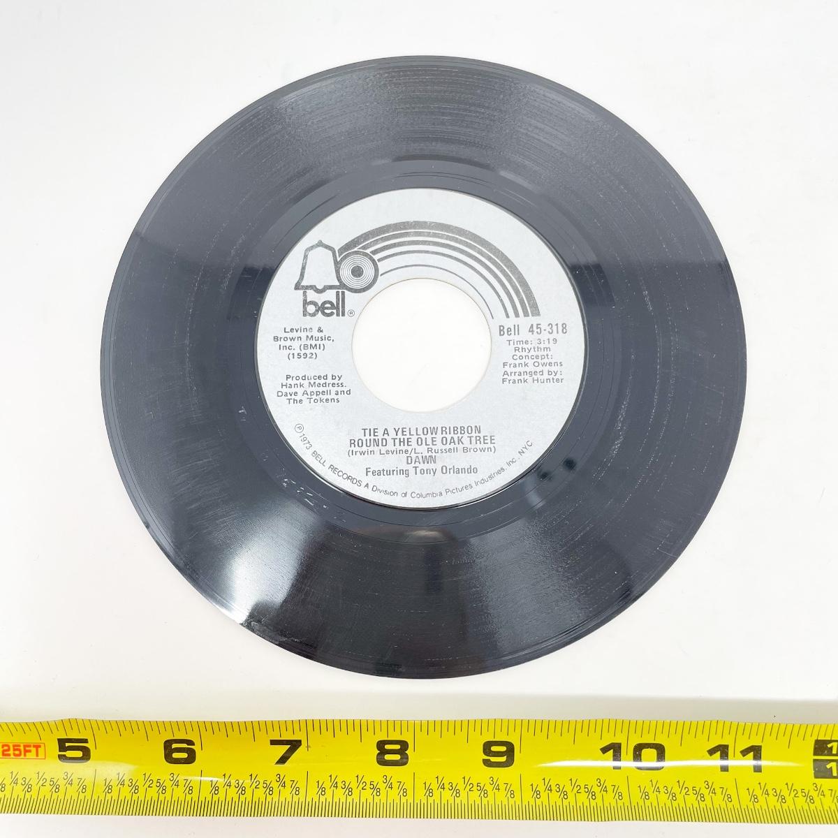 45 RPM DAWN 45-318 “I CAN’T BELIVE HOW MUCH I LOVE YOU/TIE A YELLOW RIBBON ROUND THE OLE OAK TREE” VINYL RECORD SINGLE