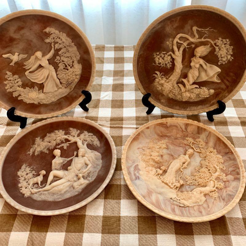 Series The Romantic Poets, 4 Incolay stone collector's plates.