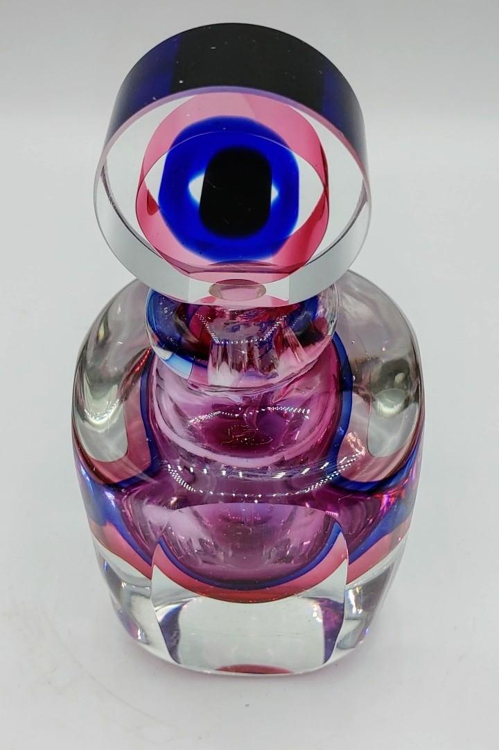 GORGEOUS VINTAGE PIECE. Murano Art Glass Sommerso Technique Perfume Bottle. Size is Approx 6 1/4" tall. Very Heavy, almost 3 lbs. Unsigned, in the style of Onesto. No chips, cracks, etc. A very small "rough" spot next to opening. Color is magnificent!
