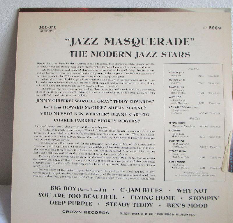 #45 Vinyl Record Album, JAZZ Masquerade, The Modern Jazz Stars
