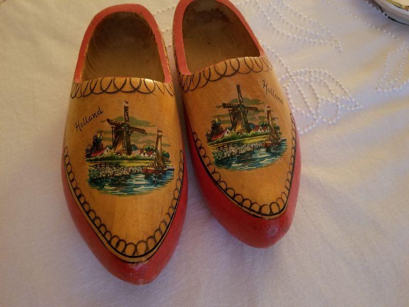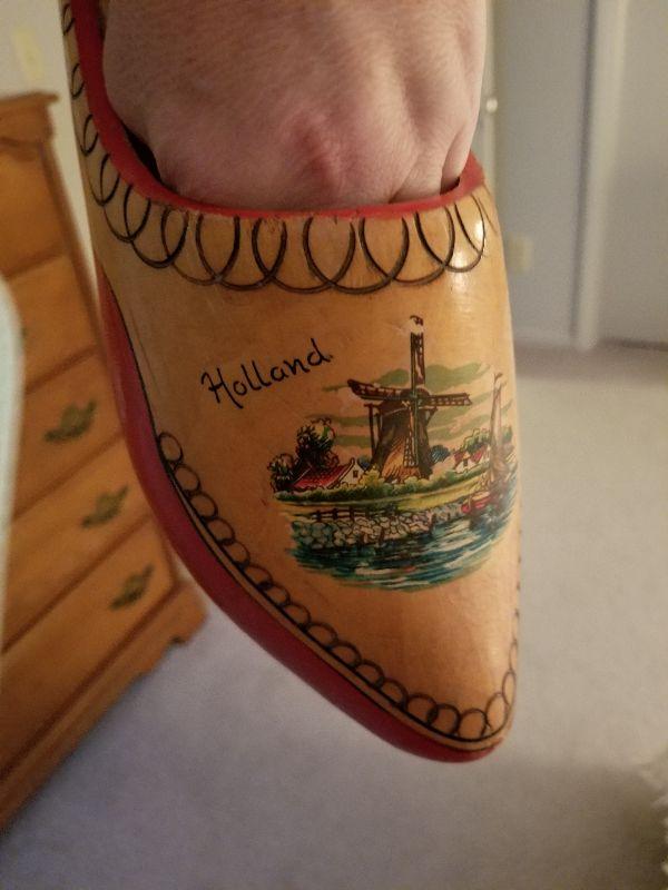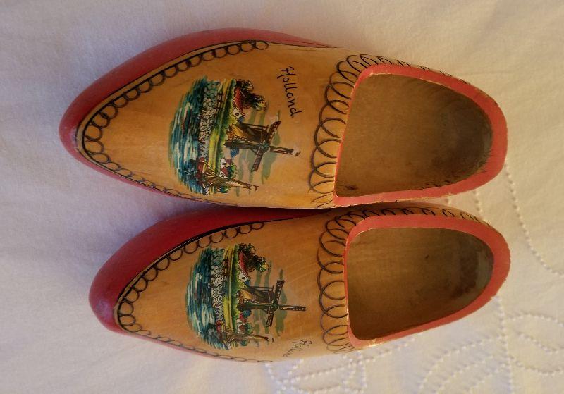 Souvenir shoes from Holland are painted with a Dutch windmill scene.