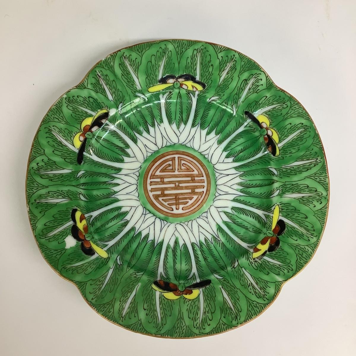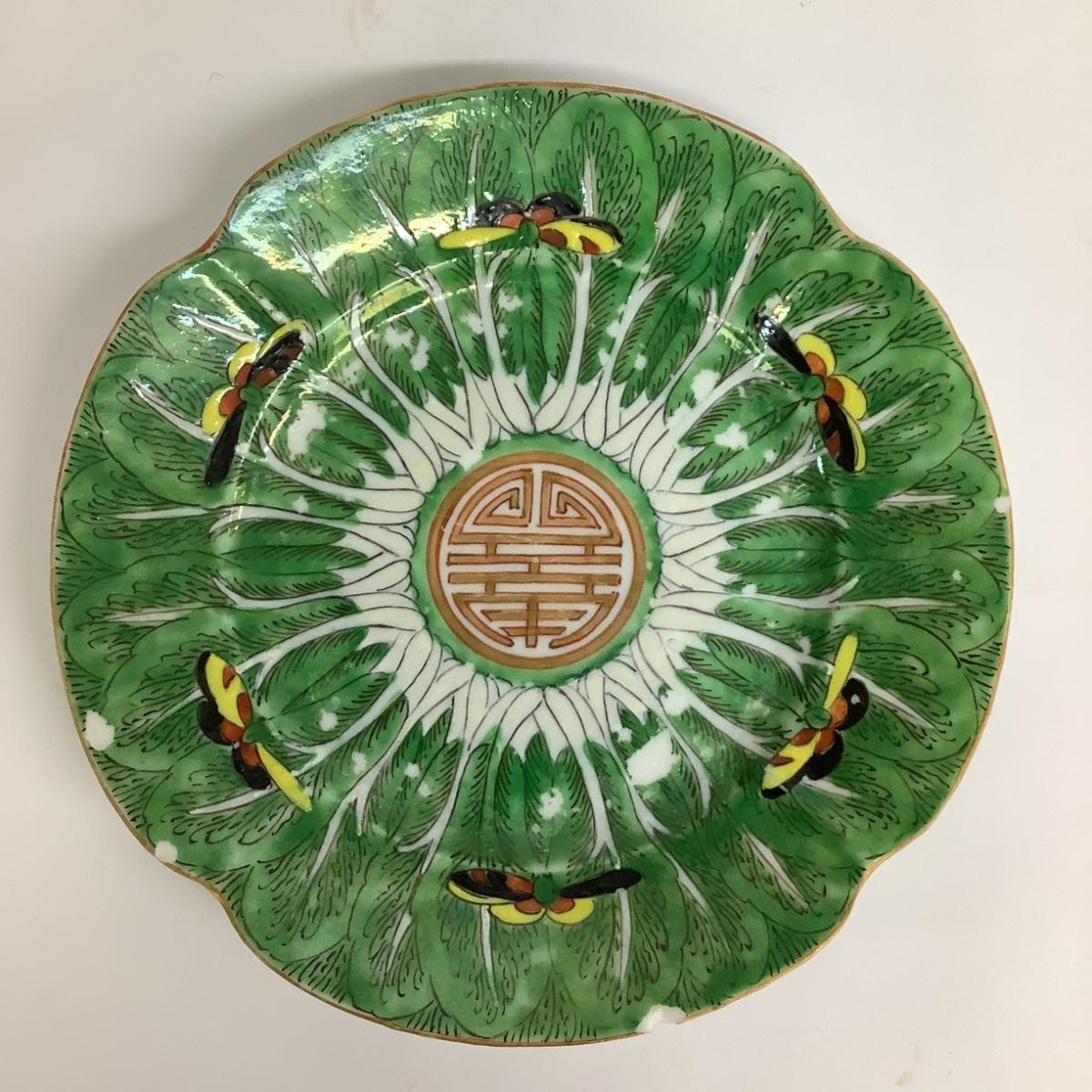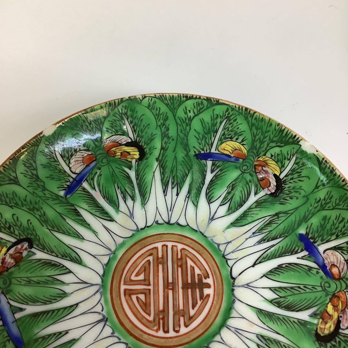 Cabbage and butterfly china 4 Plates and 1 saucer . One plate and saucer have noticeable chips as show in photos.