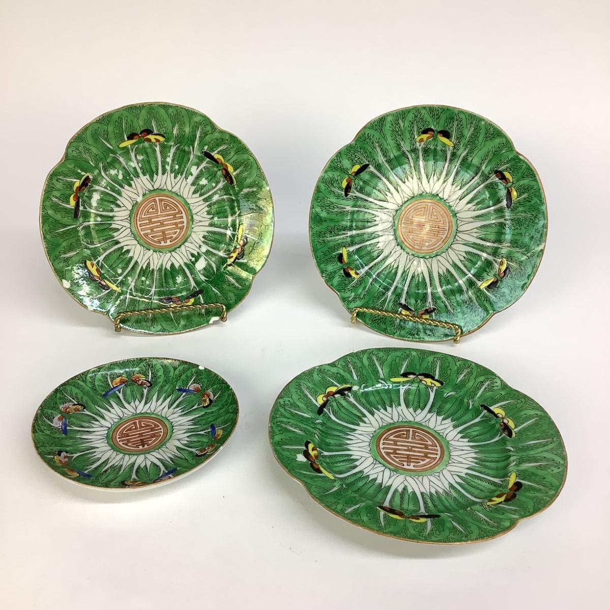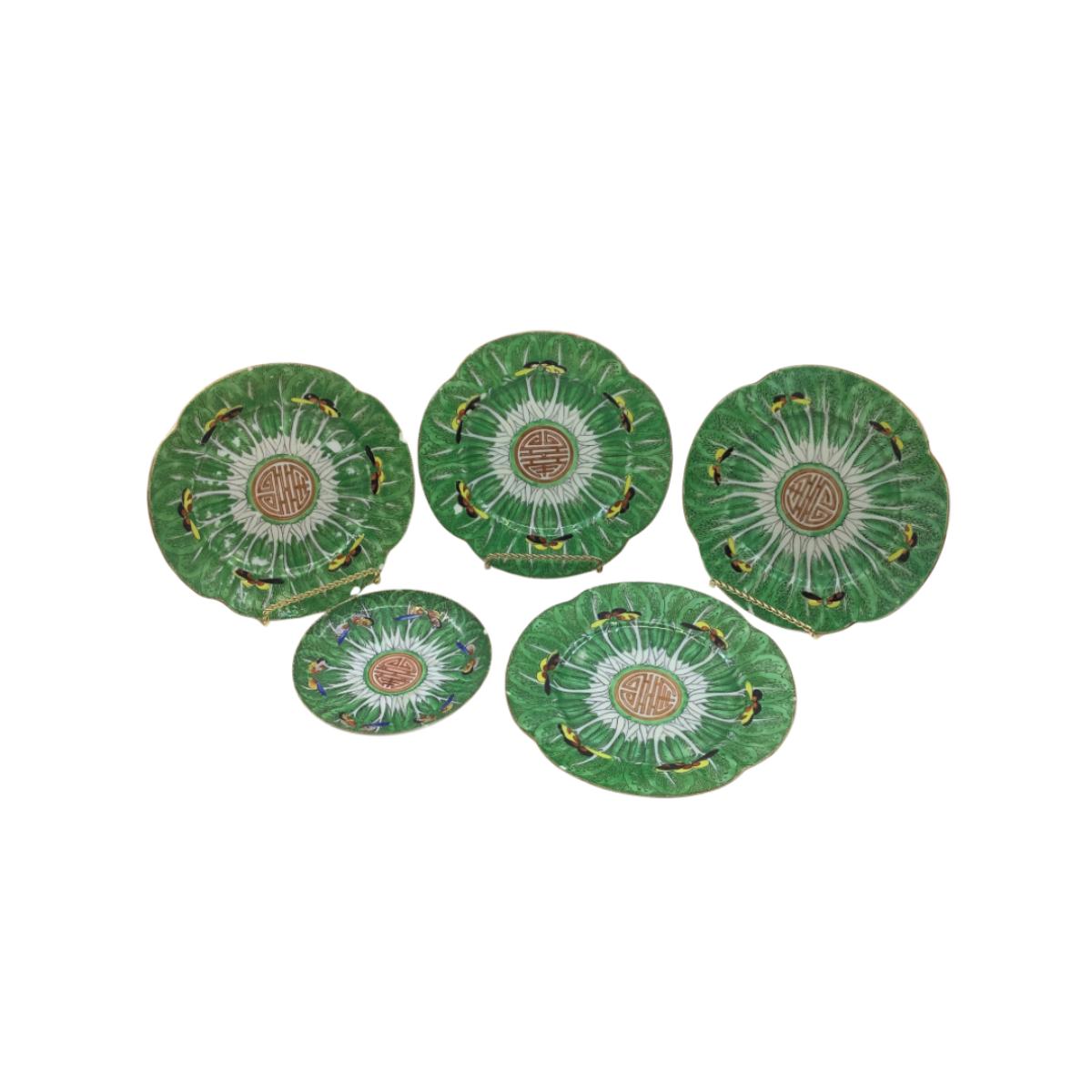450 Antique Famille Verte Bone China "Bok Choy" Plates & Saucer