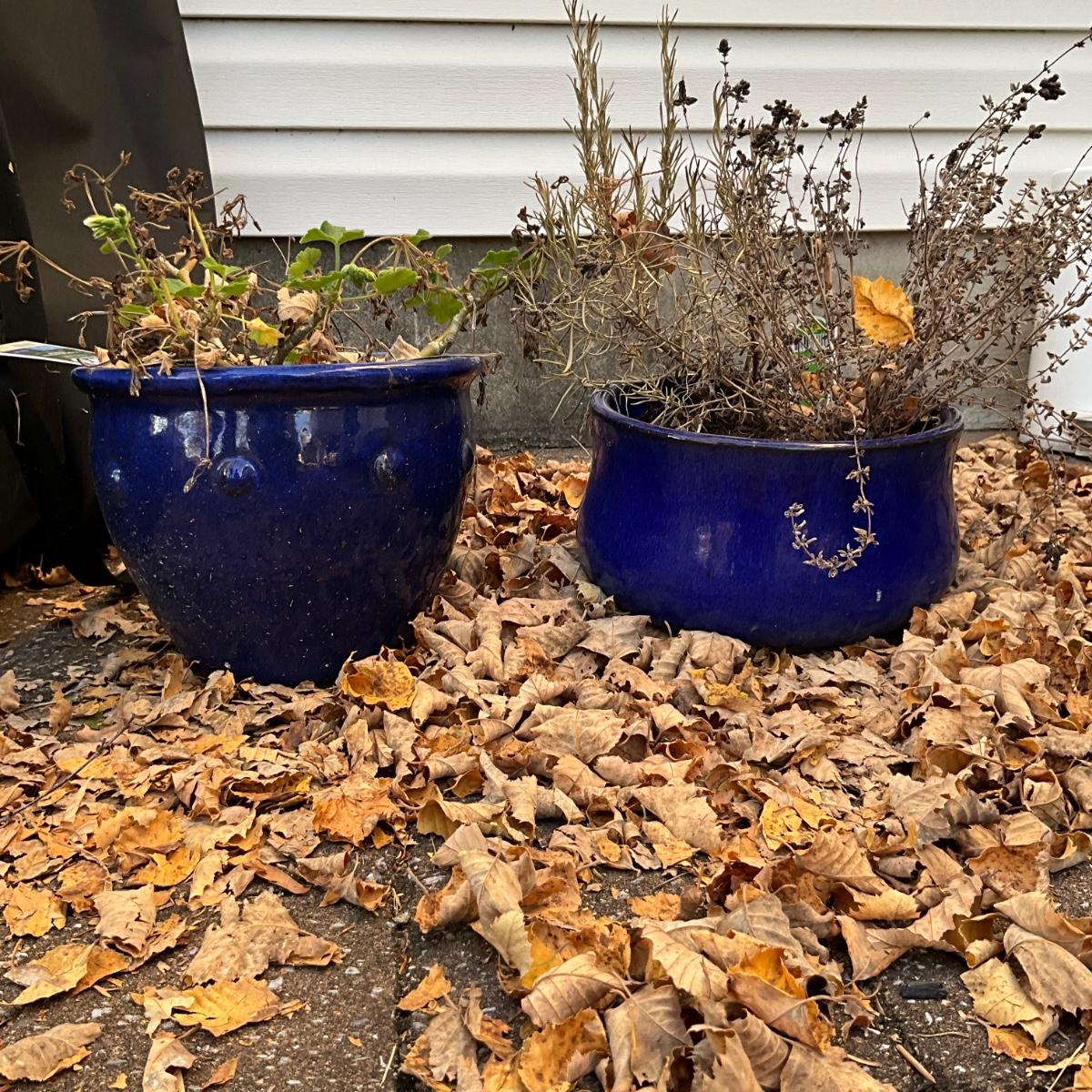 450 Lot of 3 Blue Glazed Planters