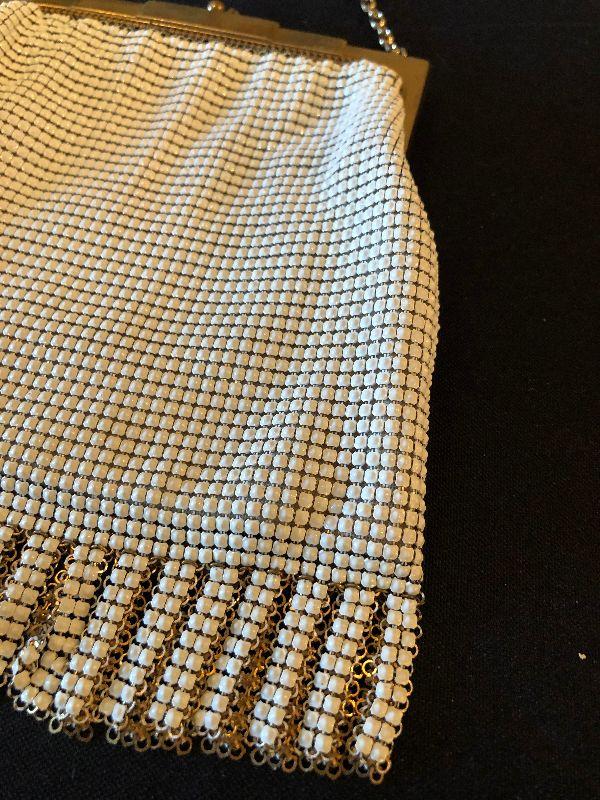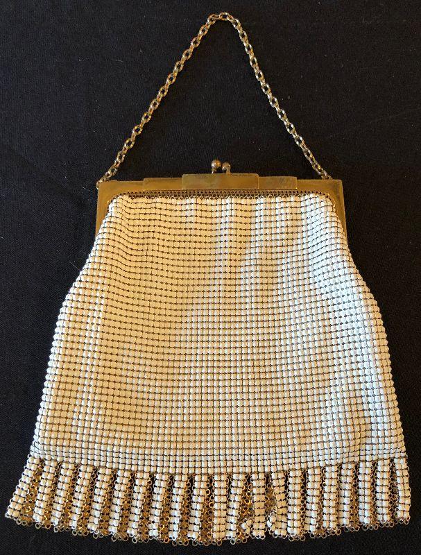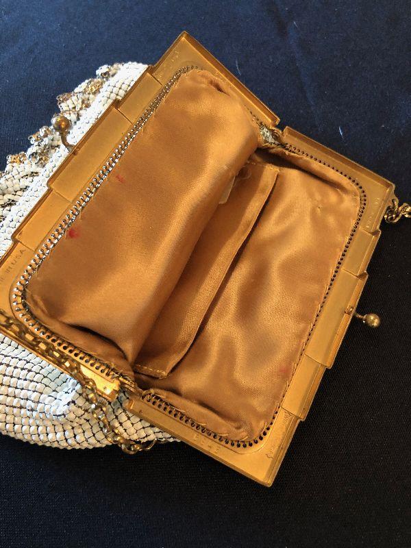 #451 White and Gold  Beaded Purse Metal Clasp Circa 1930's