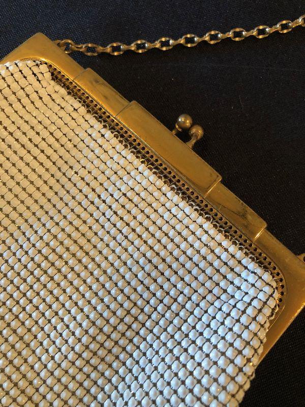 #451 White and Gold Beaded Purse Metal Clasp Circa 1930's