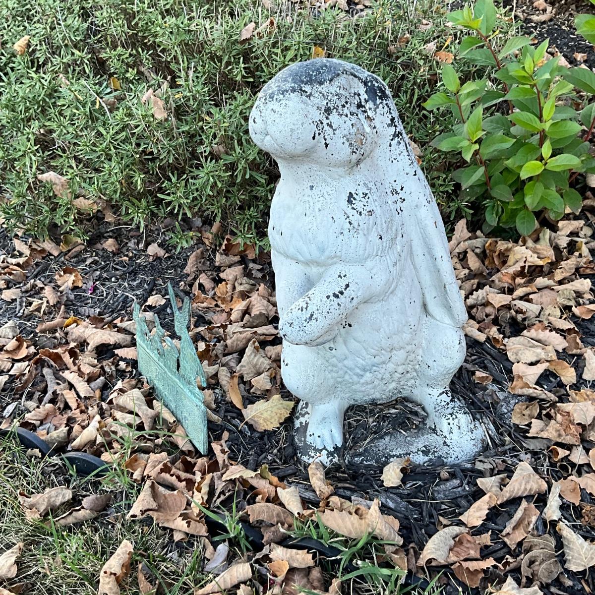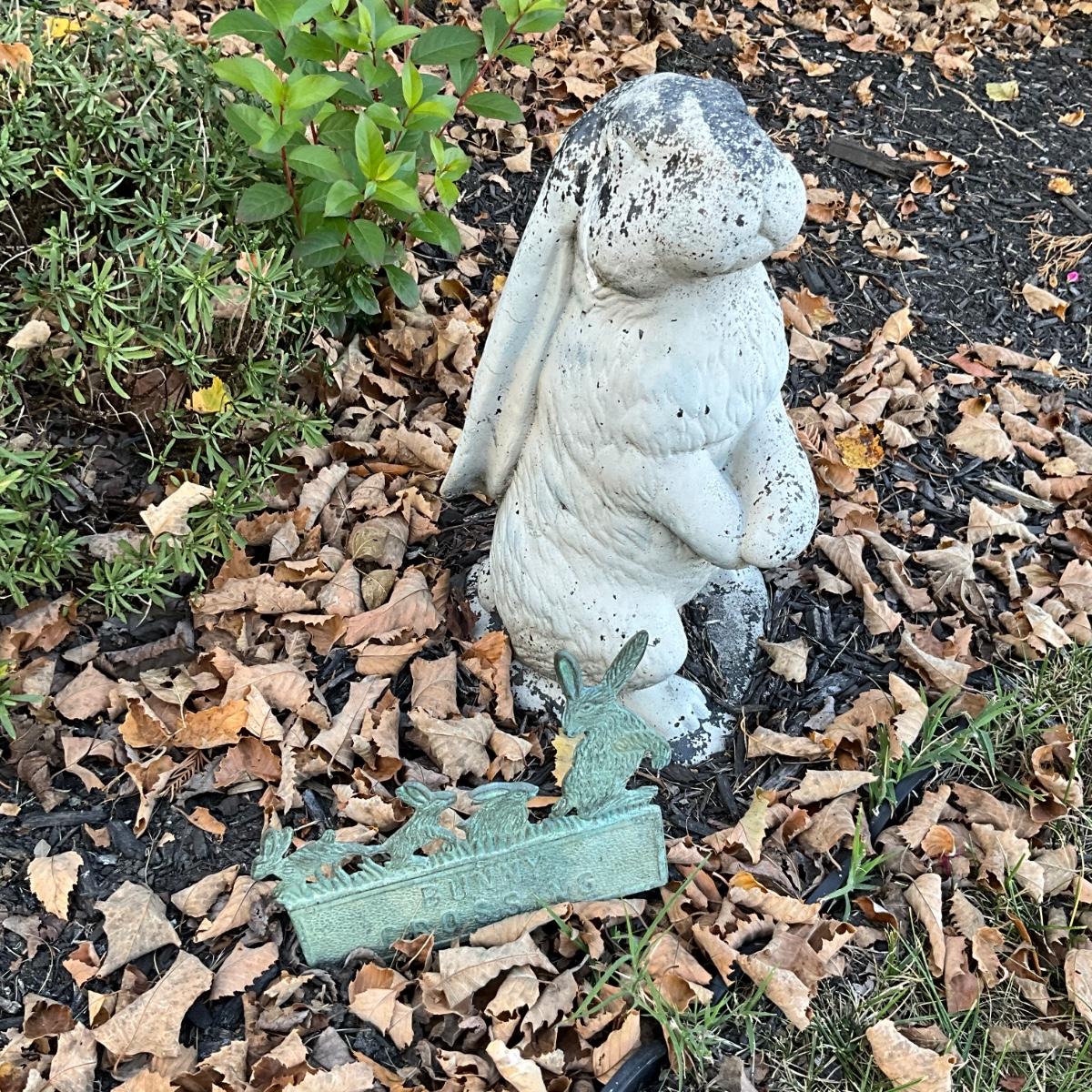 453 Concrete Bunny Statue w/ Bunnies Crossing Sign