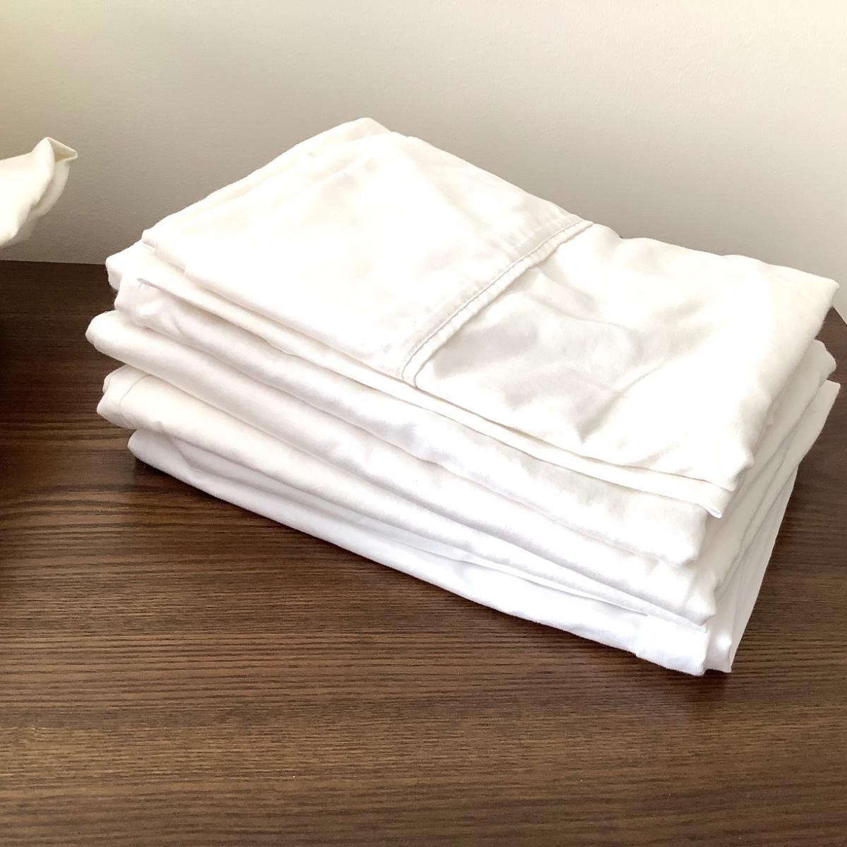 2 flat sheets, 2 fitted sheets, 6 standard pillow cases