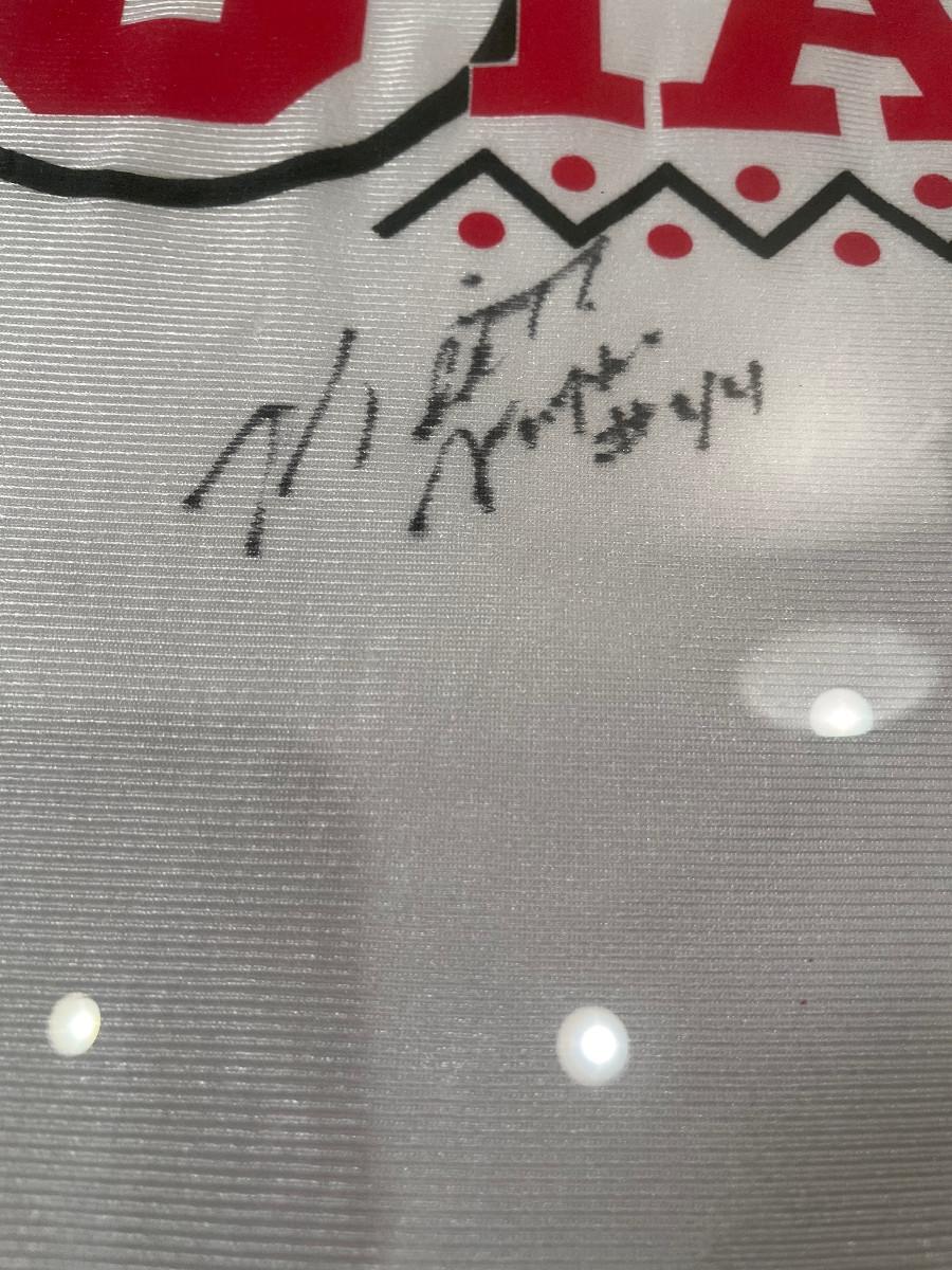 Signed and Framed we will ship but not the frame! Jersey only. Frame is Cracked soooo.