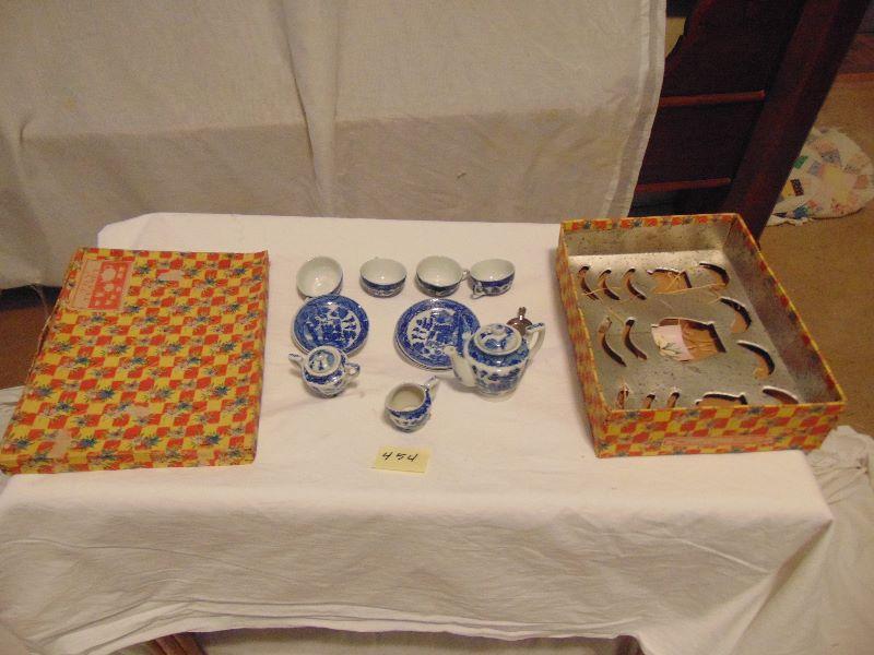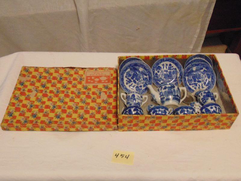 454 Tea set with original box. Stamped 'Made in Occupied Japan'. Service for four, creamer, sugar, teapot