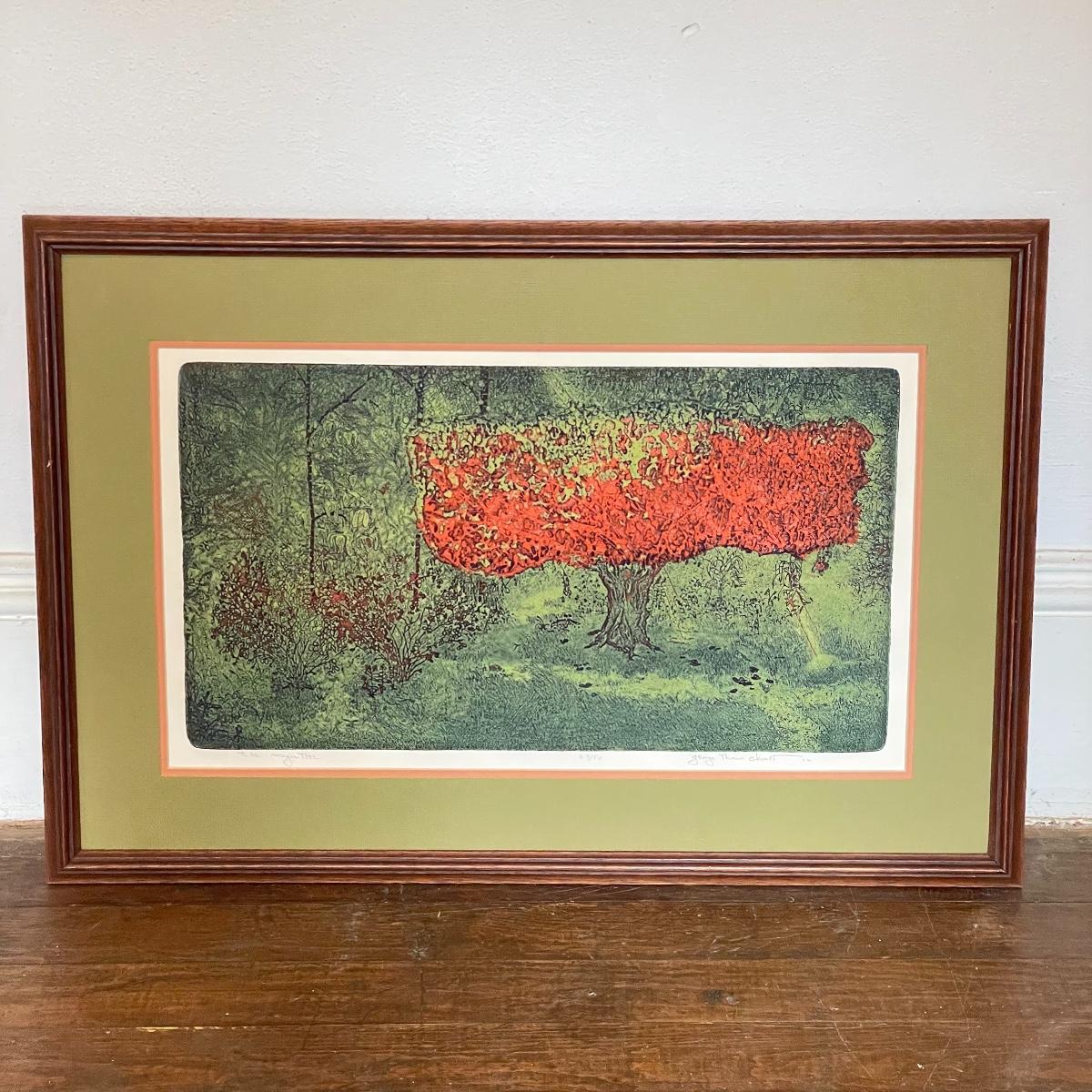 “The Magic Tree” Etching by George Thomas Chrest. Piece is numbered, titled and pencil signed. Art has a mat, but no glass in a wooden frame measuring 31” x 21.5”. Shipping available. Please call UPS with dimensions at 828-252-6930 for a shipping quote prior to bidding.