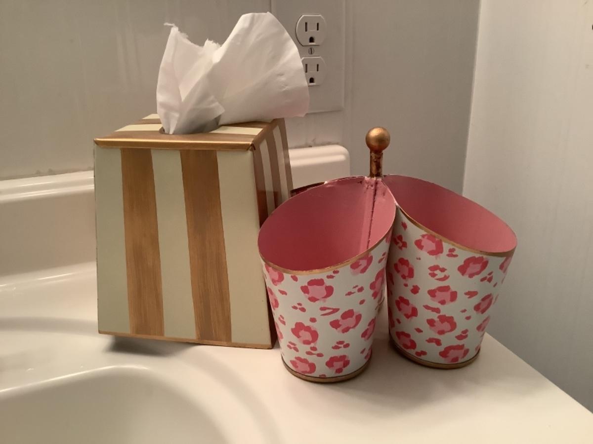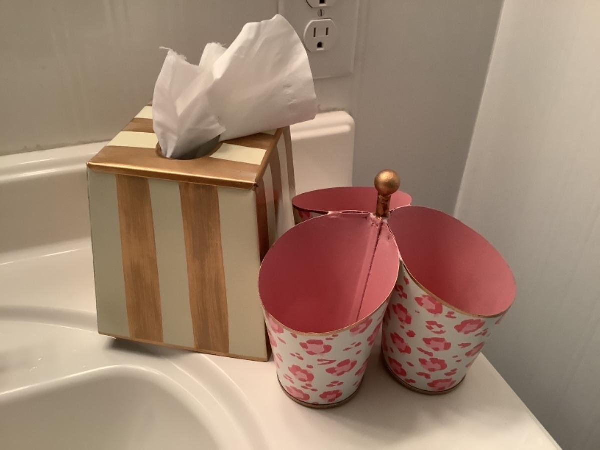 458. Decorative Tissue Box Cover & 3 Section Pink Floral Organizer