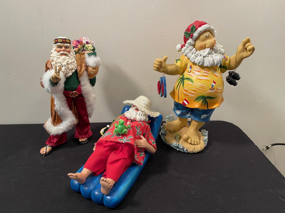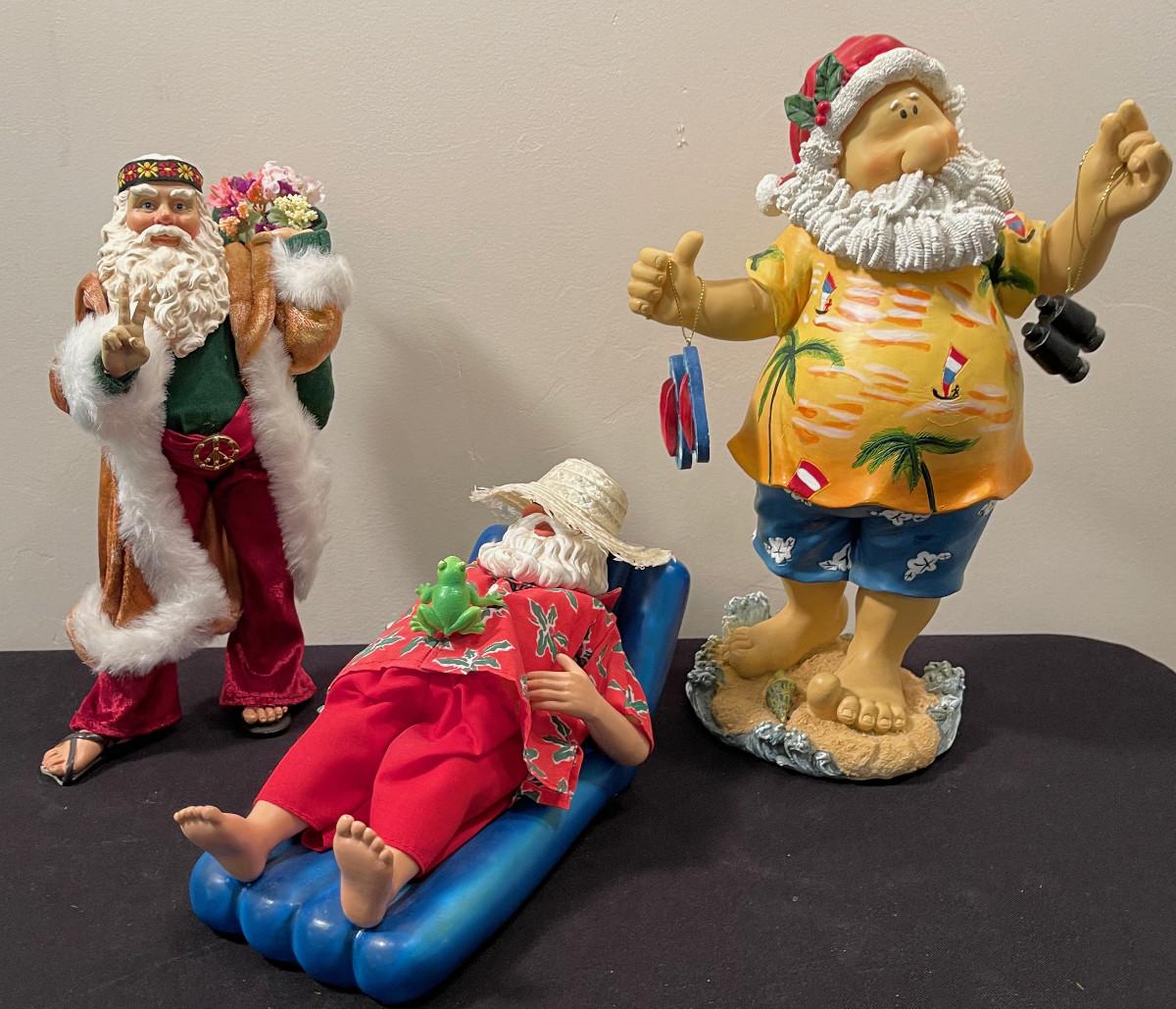 #459 3 Santa's Flower Children Santa, Beach Man Santa