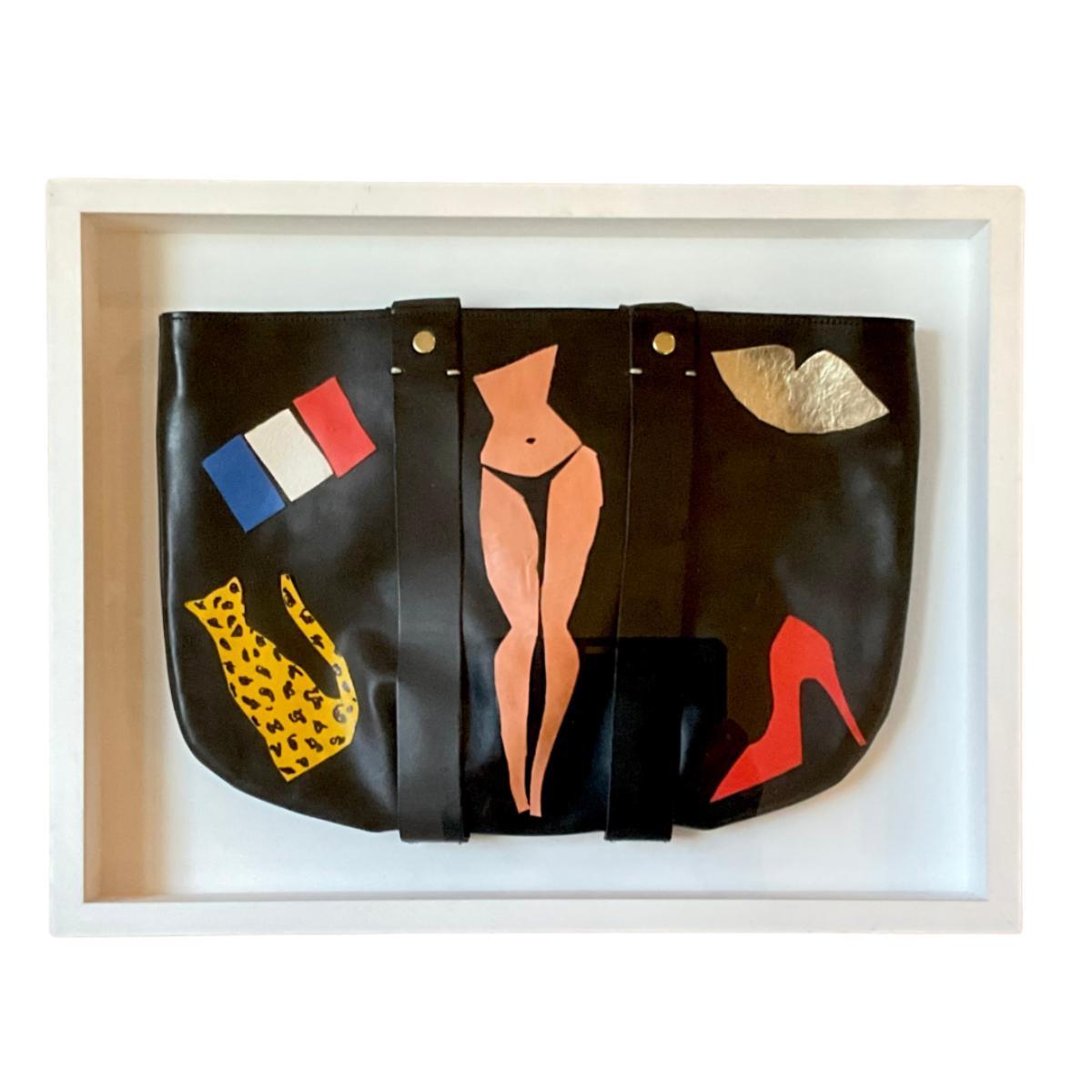 459 Original DONALD DRAWBERTSON Framed Black Purse w/ Leather Cutout Decal