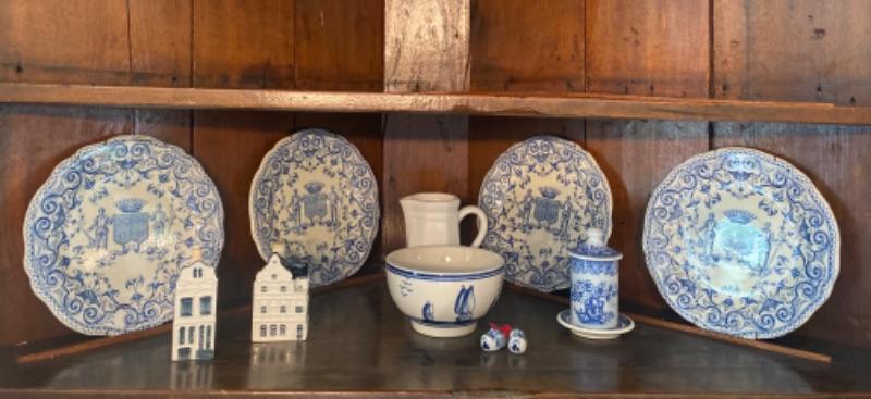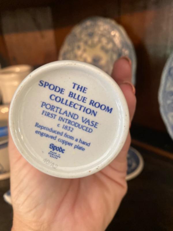 Set of Blue and White Plates meauring approximately 8.5” round and marked ENT on the back , one Bols Bottle and Spode jar