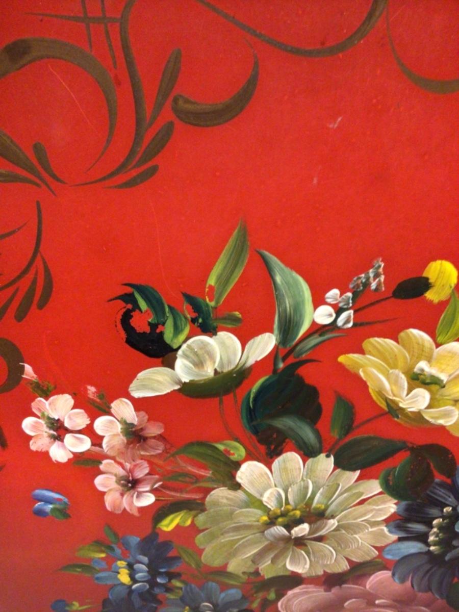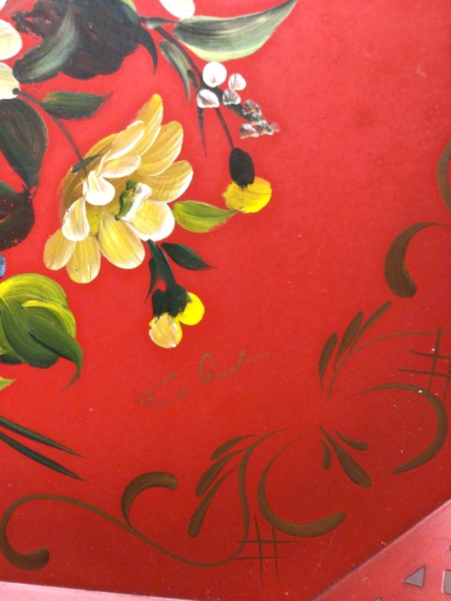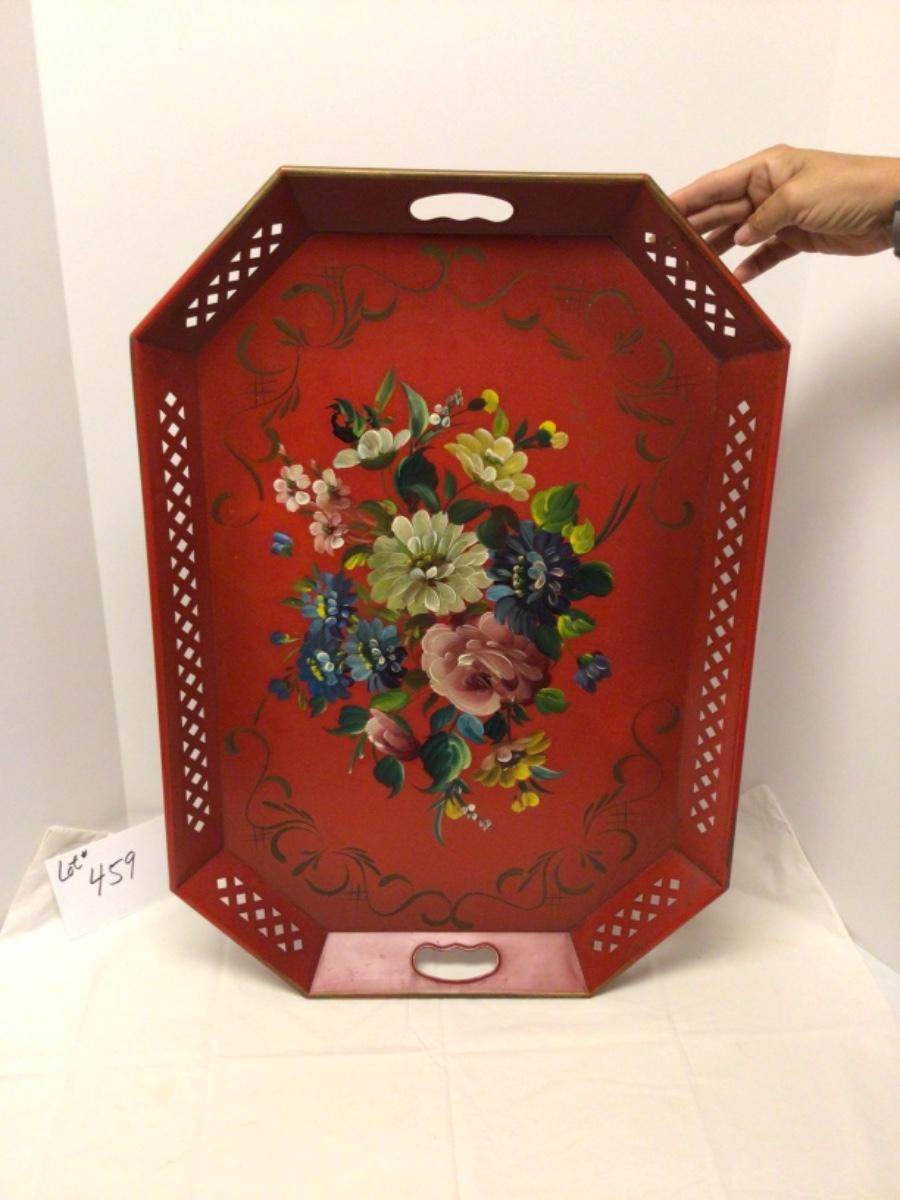 Handpainted tole tray signed Fred Graham. Measures 26 1/2“ x 18 3/8 and good condition