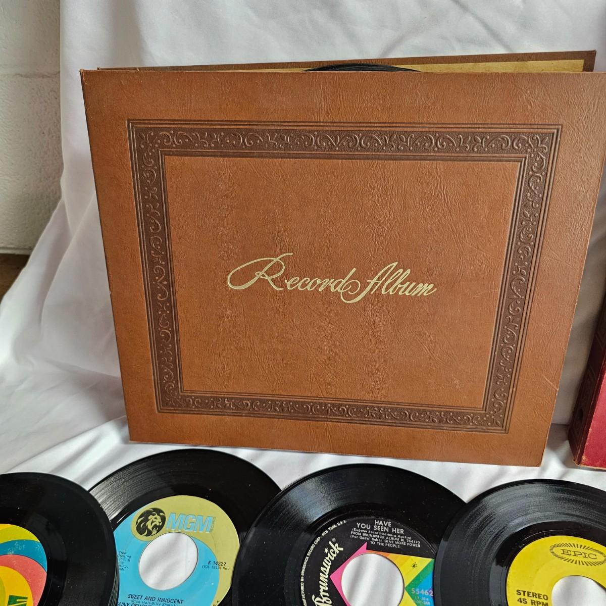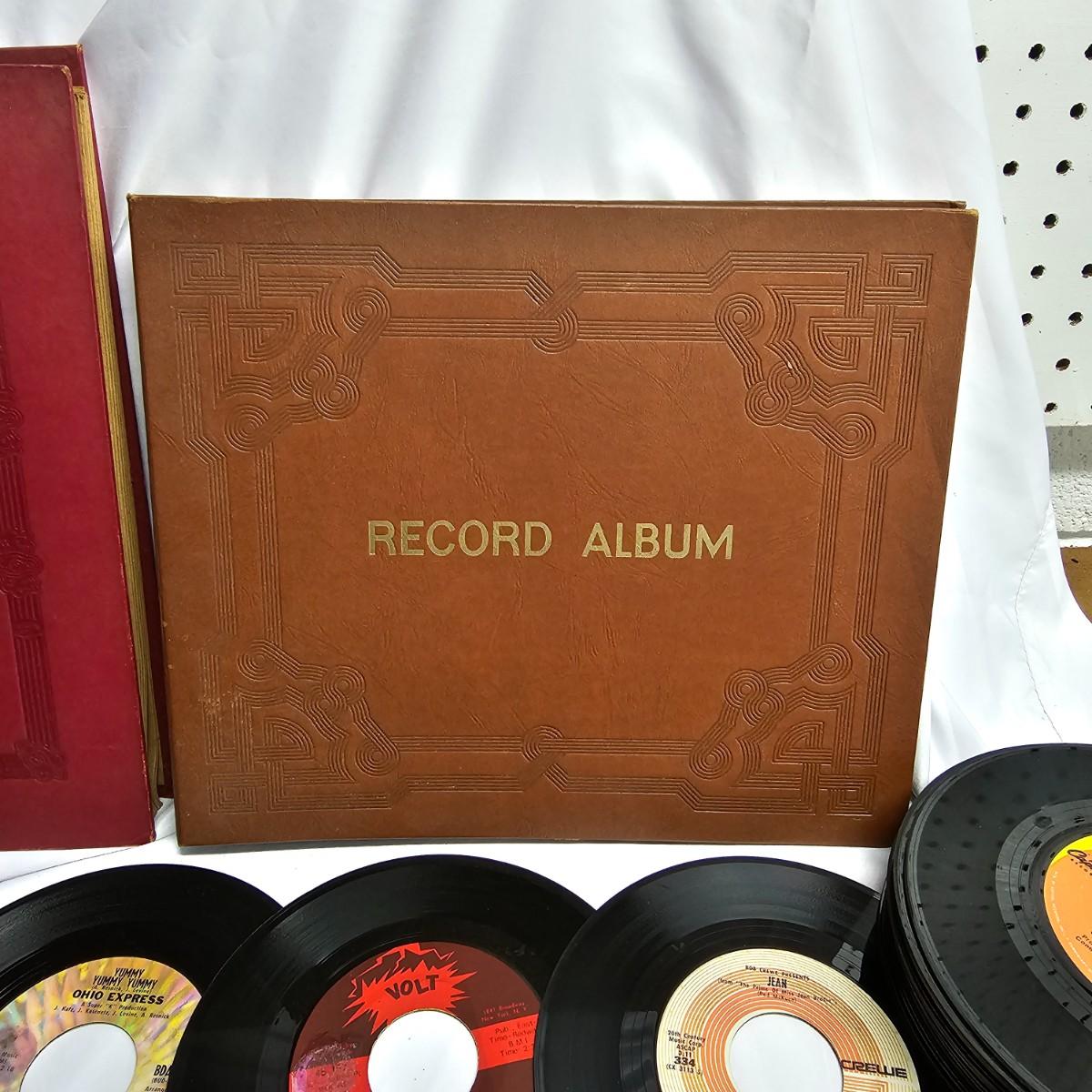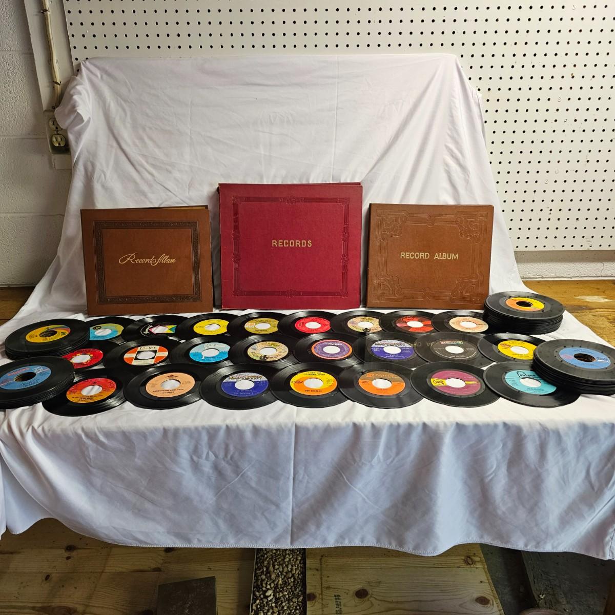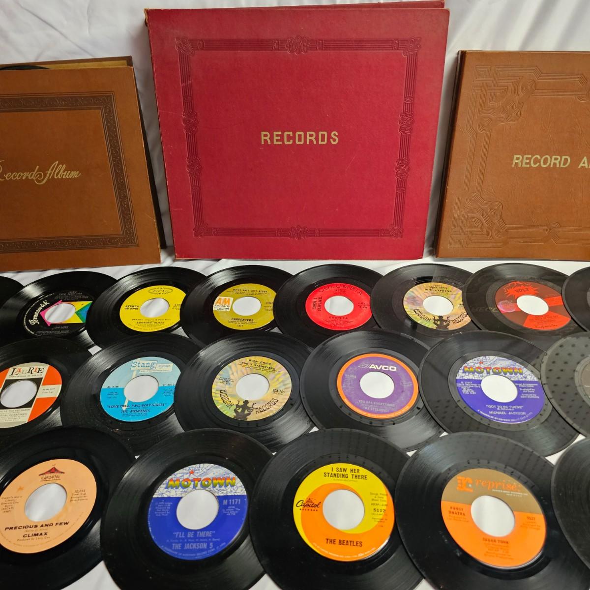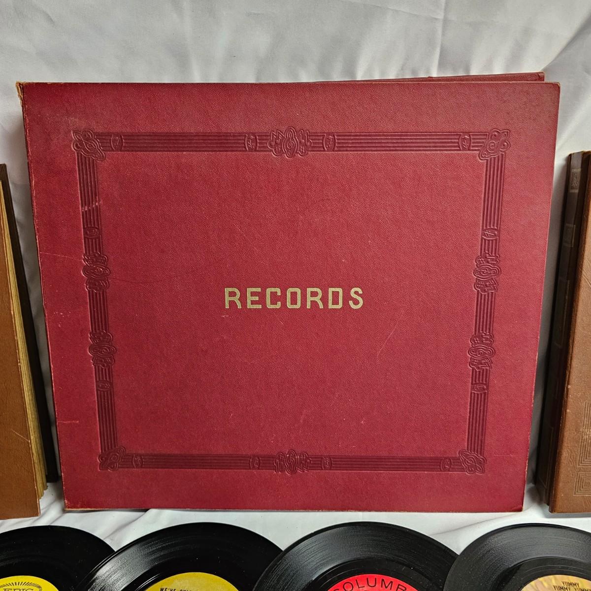 10" and 12" 78 rpm records in album holders. Eight of the 12" and 12 of the 8" discs. Also includes one extra album case. Perry Como, Fats Domino, Dean Martin, others. Also over seventy-five 45 rpm records from the 60's, 70's and 80's. Beatles, The Who, Three Dog Night, CCR, Michael Jackson, more. Too many to list all but a great selection. See photos for details. Shipping available.