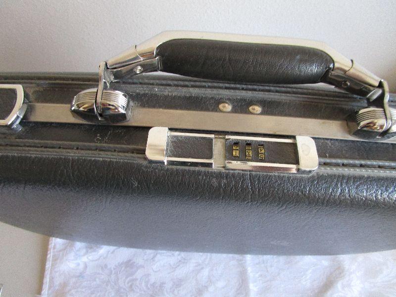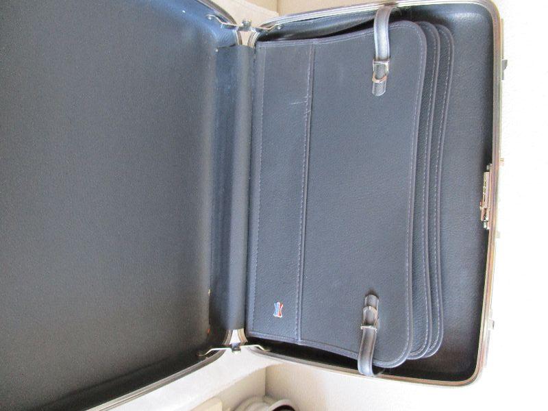 Dark Gray Briefcase with rounded edges, nice interior, has plastic/rubber feet, 19"x13"x3"