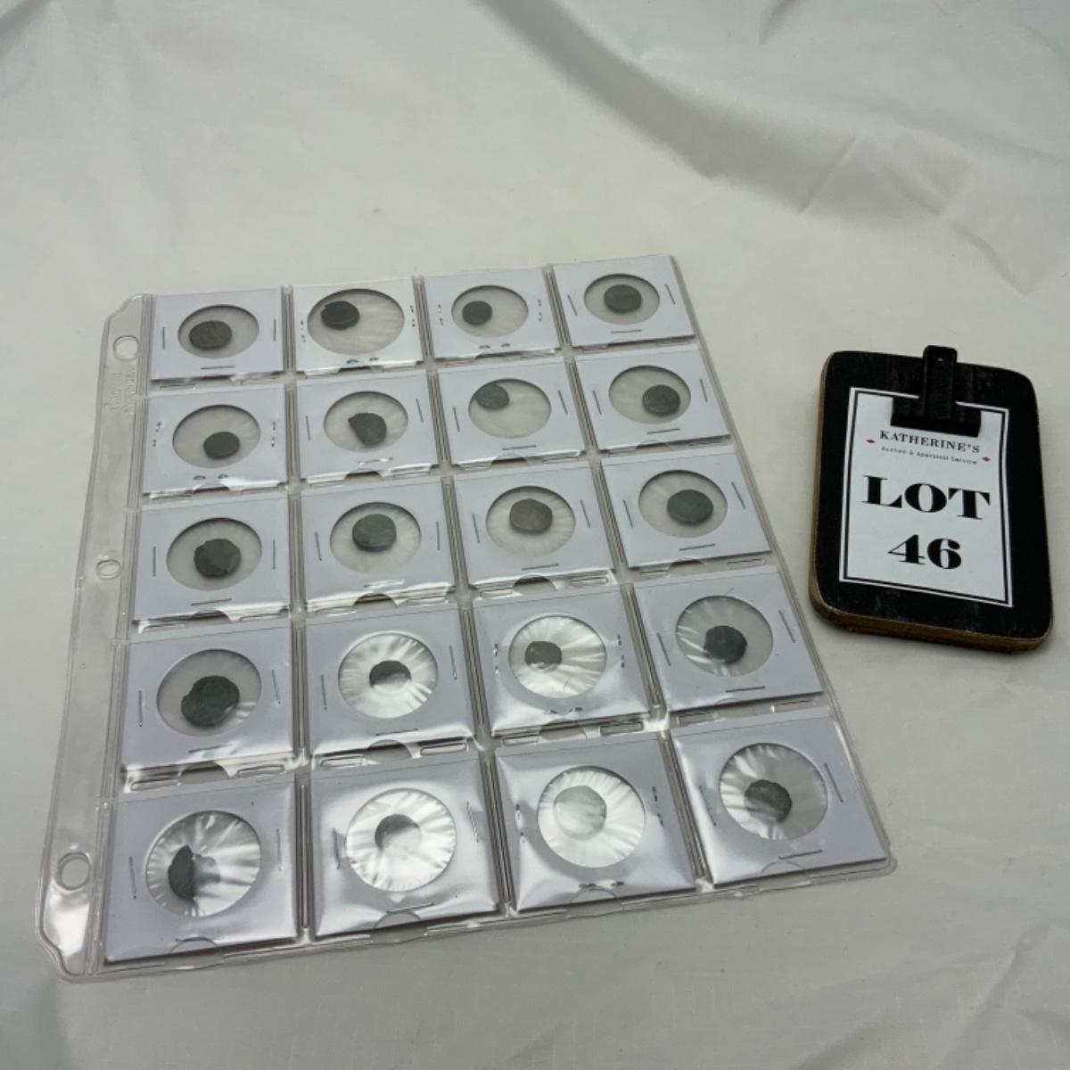 Twenty Constantine Era Coins dating from 1-400 AD. Several Brass coins in the mix. Each come in cardboard flips and all fit in the page. More research may be needed - a fun project for you! There could be some excellent pieces in here!! Please see photos for details and condition. ::: Shipping is available on this lot. If you require shipping you must let us know at the close of the auction. We will coordinate with you after the item has been won. Shipping fees will include insurance up to or exceeding the value of all items being mailed. If you have any questions regarding this lot please contact the auctioneer either via this website, by direct email or by phone. PICK UP TIMES and other important information can be found in the TERMS and DESCRIPTION of the auction. Please take a look for pertinent information. Thanks!