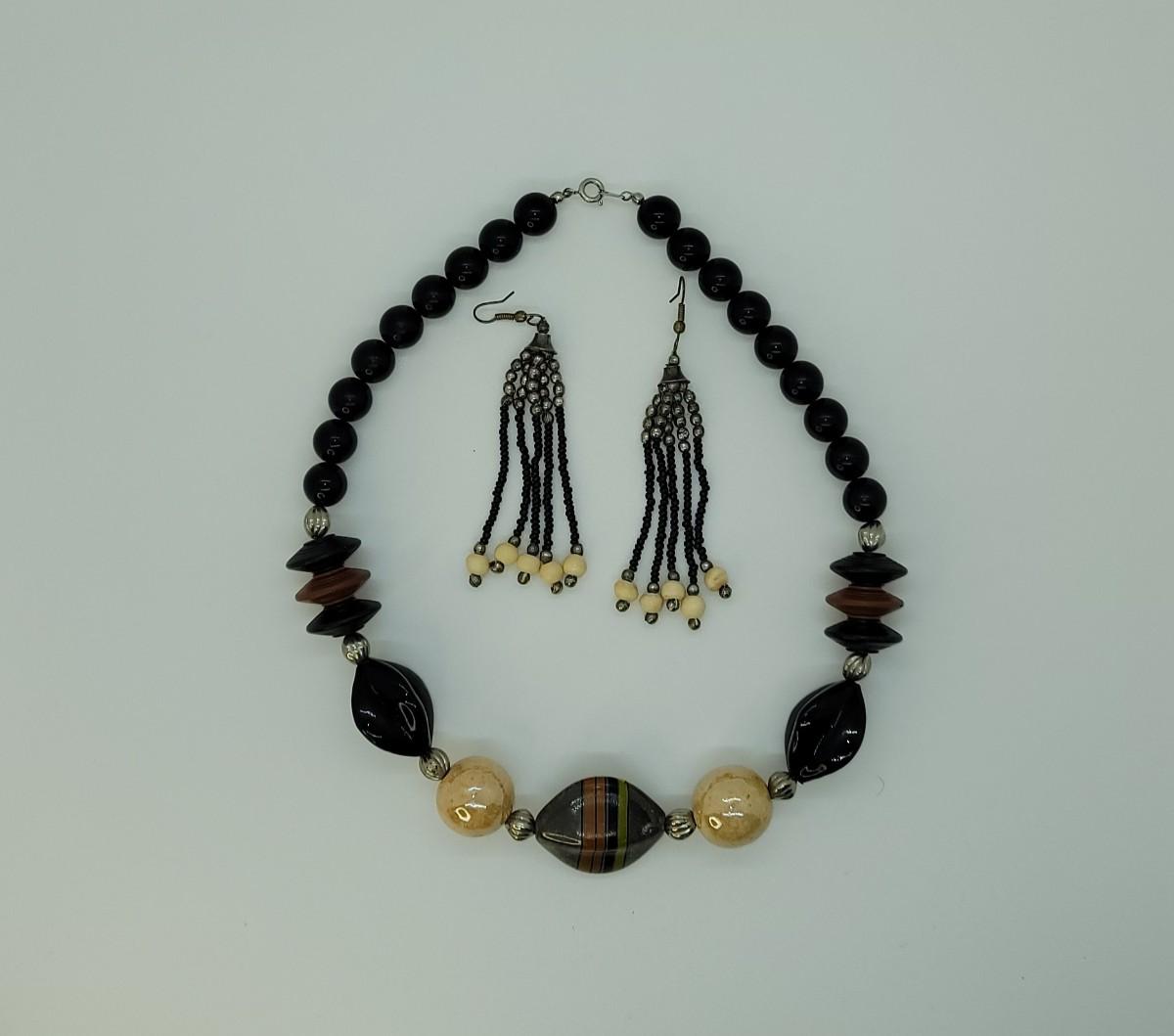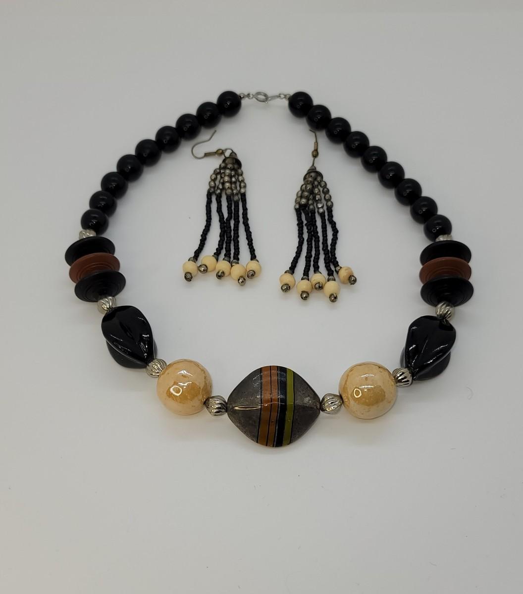 46: Beaded Choker and long beaded pierced earrings