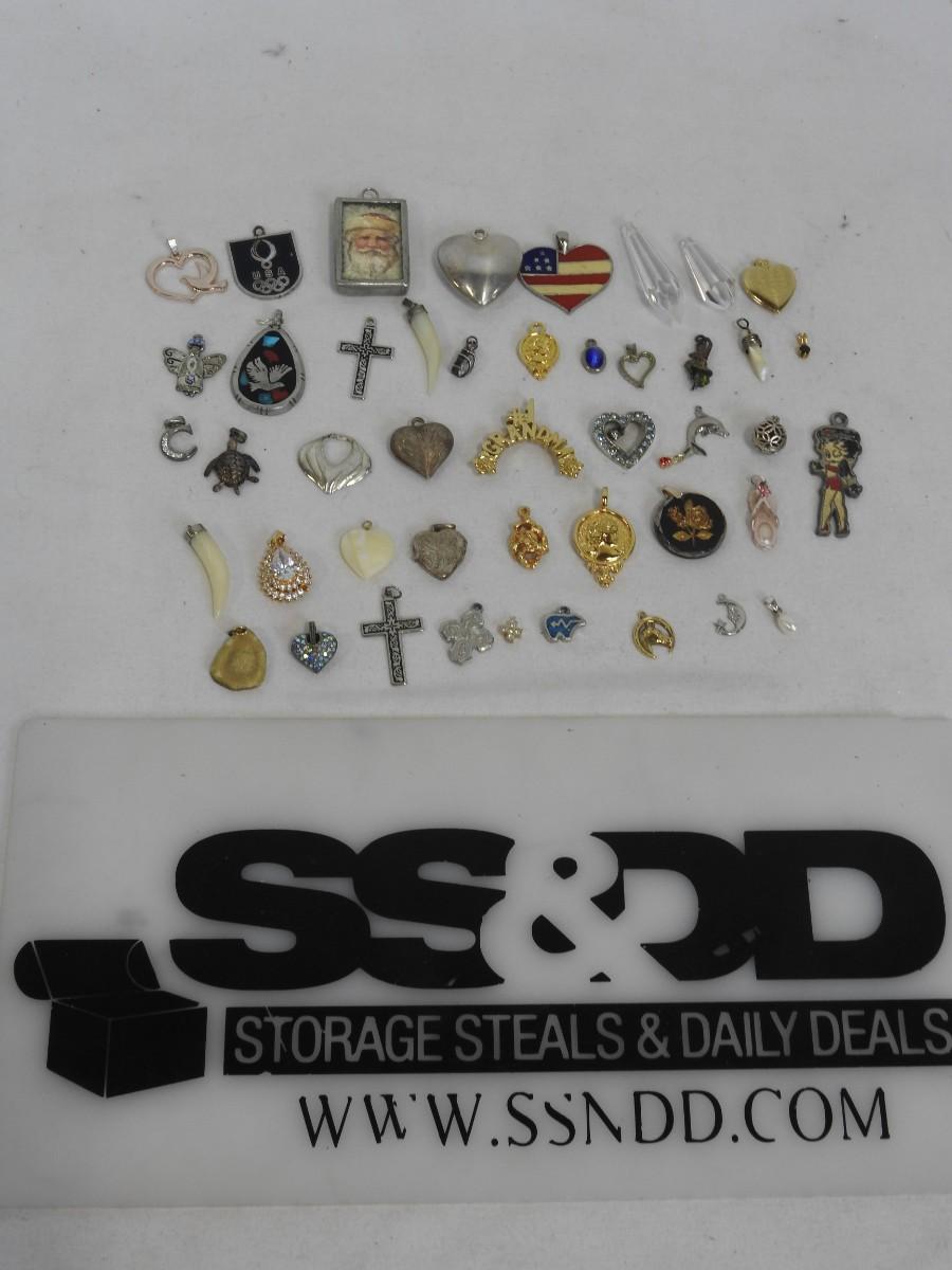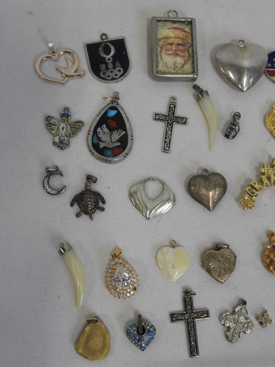 46 Costume Jewelry Pendants / Charms: Hearts, Crosses, Moon, Dolphin, Turtle
