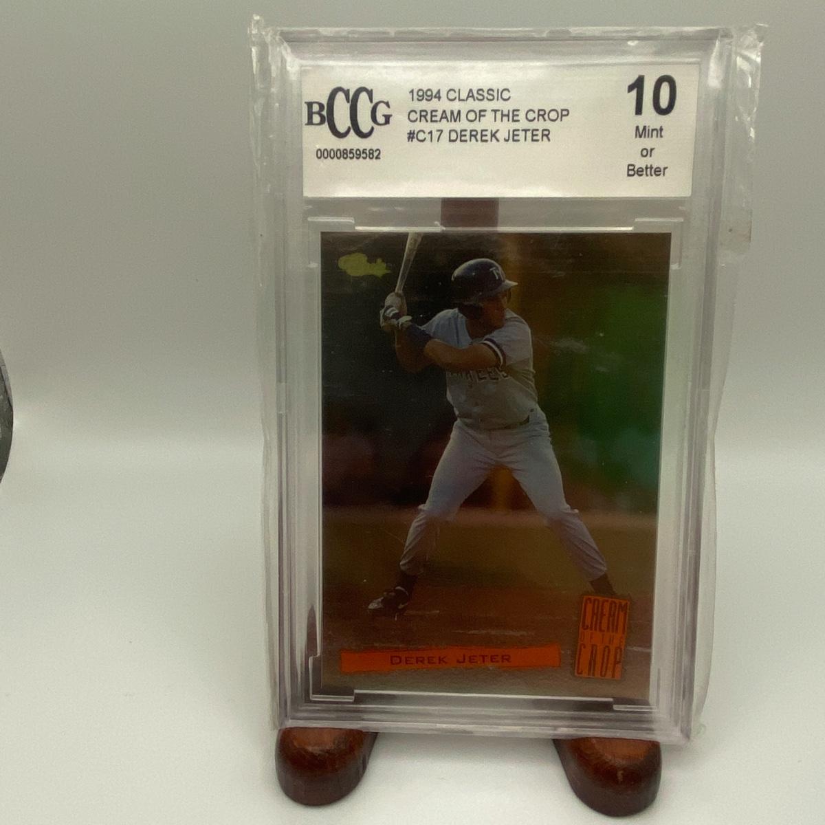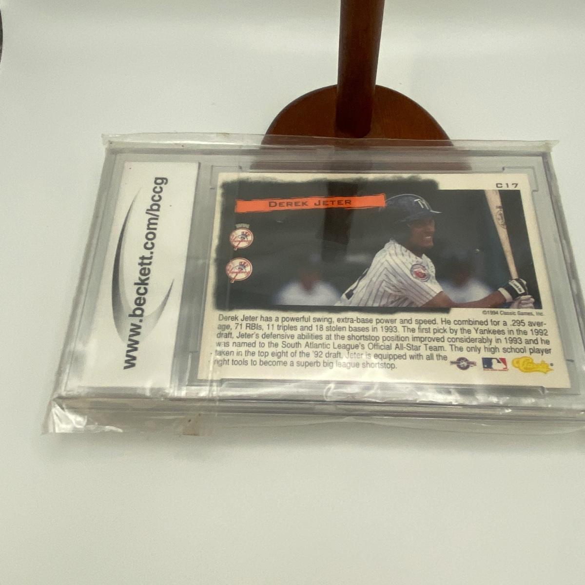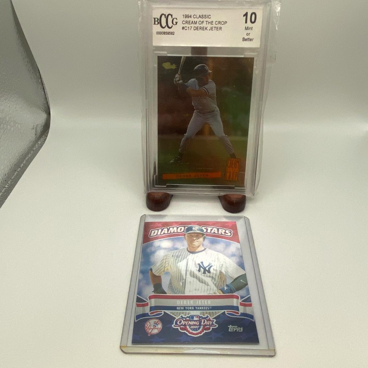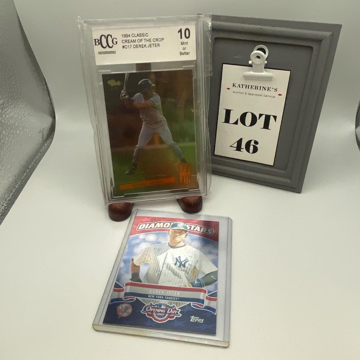 Two Derek Jeter cards one graded 1994 card 10 mint one un graded sport card. Please see photos for details and condition. ::: Shipping is available on this lot. If you require shipping you must let us know at the close of the auction. We will coordinate with you after the item has been won. Shipping fees will include insurance up to or exceeding the value of all items being mailed. If you have any questions regarding this lot please contact the auctioneer either via this website, by direct email or by phone. PICK UP TIMES and other important information can be found in the TERMS and DESCRIPTION of the auction. Please take a look for pertinent information. Thanks!
