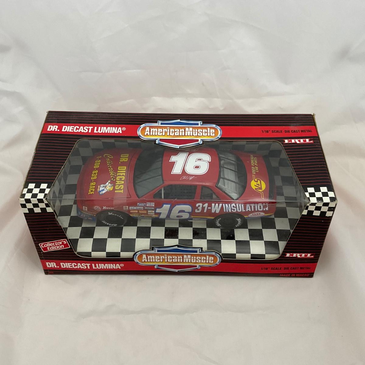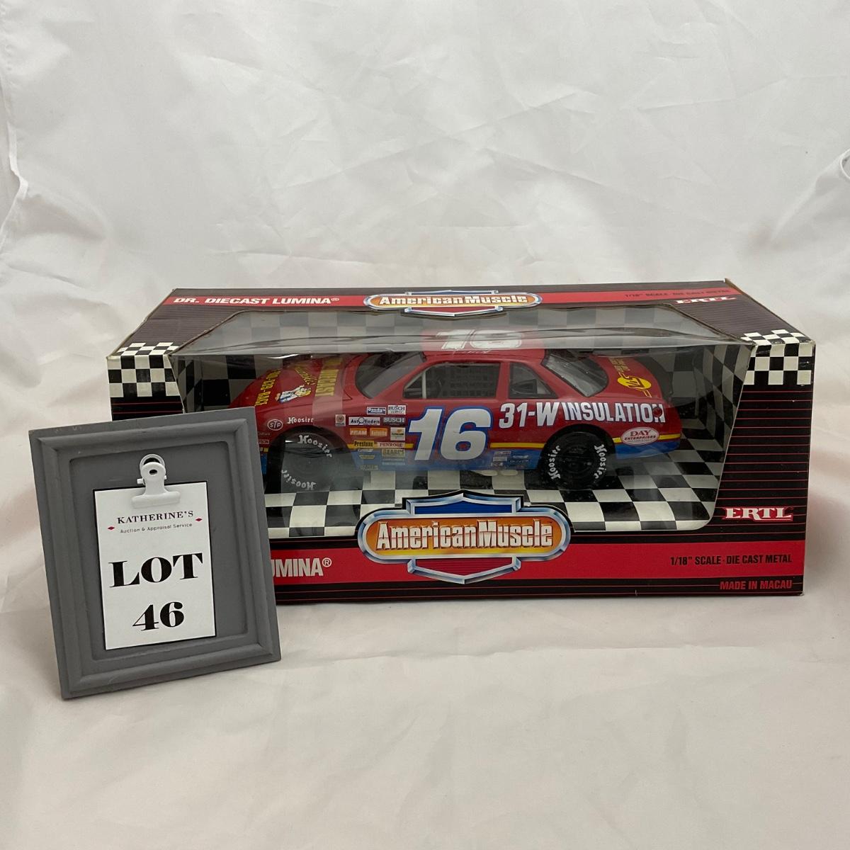 One NASCAR die cast 1:18 scale Dr. DieCast Lumina in box. Please see photos for details and condition. ::: Shipping is available on this lot. If you require shipping you must let us know at the close of the auction. We will coordinate with you after the item has been won. Shipping fees will include insurance up to or exceeding the value of all items being mailed. If you have any questions regarding this lot please contact the auctioneer either via this website, by direct email or by phone. PICK UP TIMES and other important information can be found in the TERMS and DESCRIPTION of the auction. Please take a look for pertinent information. Thanks!