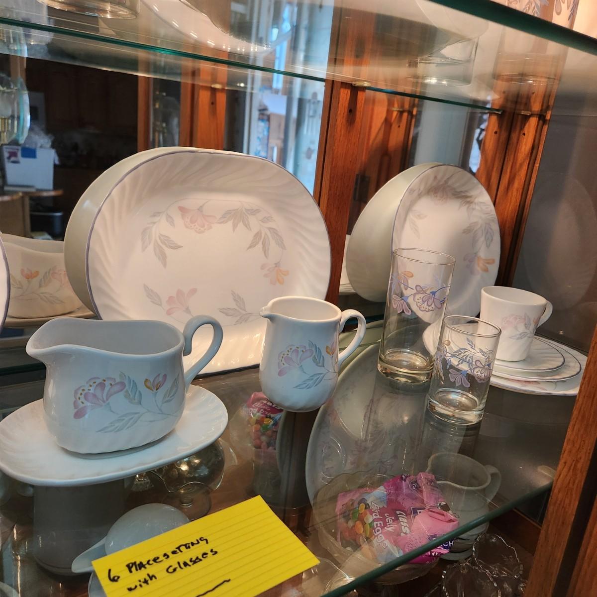 2 Platters, Sugar & Creamer , 6 Tall 6 Juice Glasses