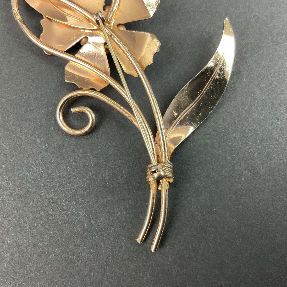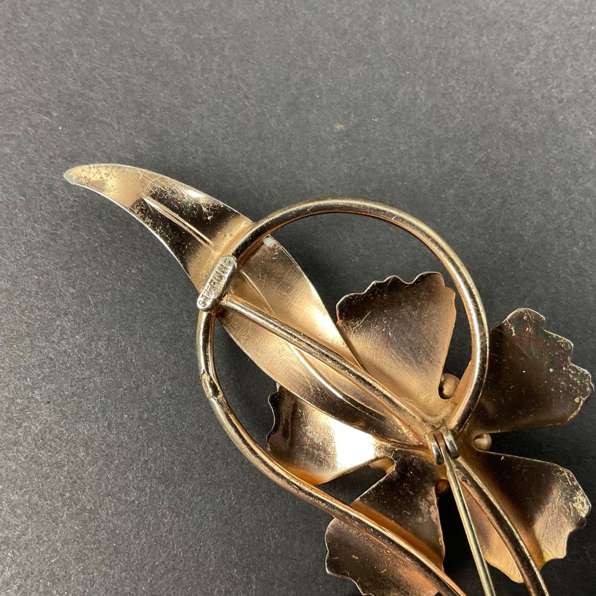 -46- SILVER | Mid Century Gold Wash Sun Flower Pin | Marked