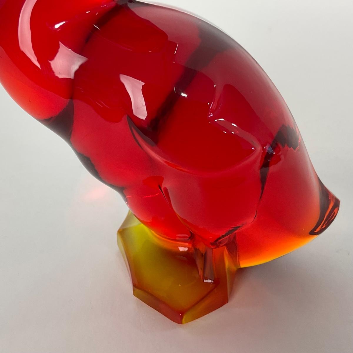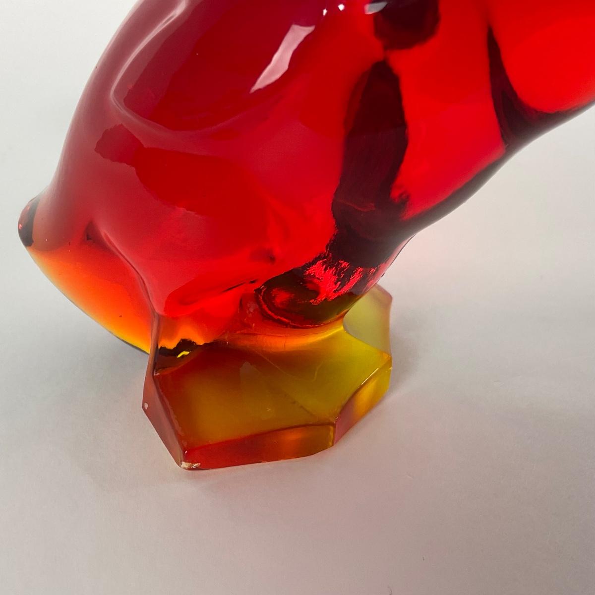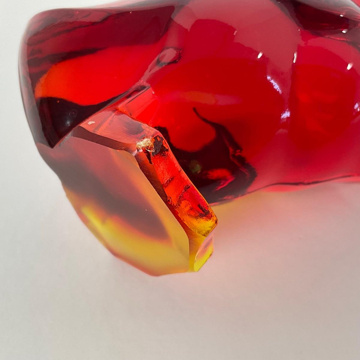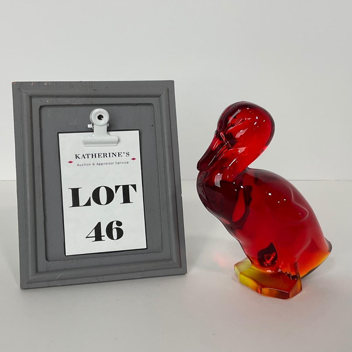 One Viking mid century Amberina fighting duck with head up. This piece does have a few minor flea bite chips at the base and bottom, but otherwise seems to be in great condition. Please see photos for details and condition. Any condition statement is given as a courtesy to a client, is an opinion, and should not be treated as a statement of fact. Reference to condition written, oral or within a condition report shall not be regarded as a full account of condition and may not include all defects, alterations, or restorations. Absence of a condition report does not imply a lot is flawless or lacking imperfections or damage. Katherine’s Auction & Appraisal Service shall have no responsibility for any error or omission. Returns shall not be accepted on the basis of condition. ::: Shipping is available on this lot. If you require shipping you must let us know at the close of the auction. We will coordinate with you after the item has been won. Shipping fees will include insurance up to or exceeding the value of all items being mailed. If you have any questions regarding this lot please contact the auctioneer either via this website, by direct email or by phone. PICK UP TIMES and other important information can be found in the TERMS and DESCRIPTION of the auction. Please take a look for pertinent information. Thanks!
