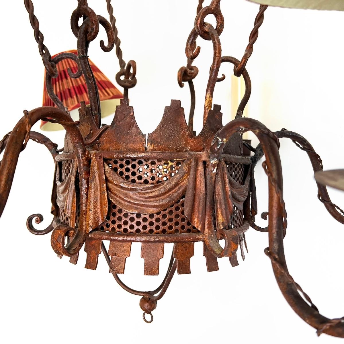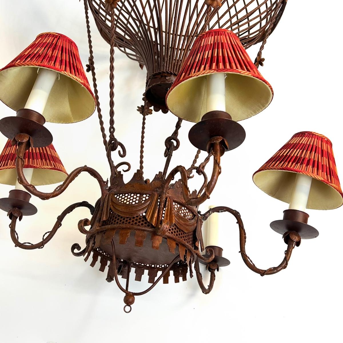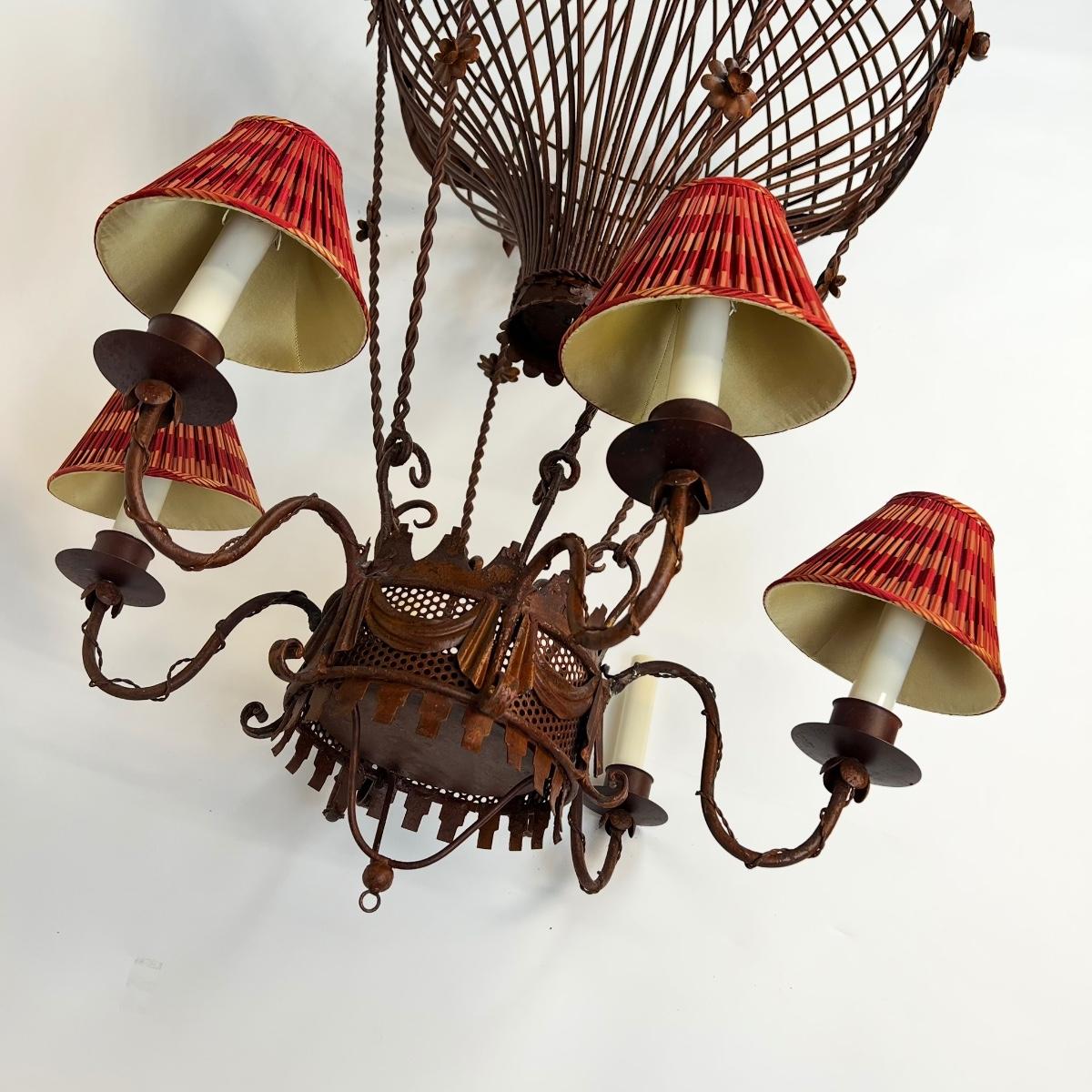 461 Large Italian Metal Six-Light Hot Air Balloon Chandelier