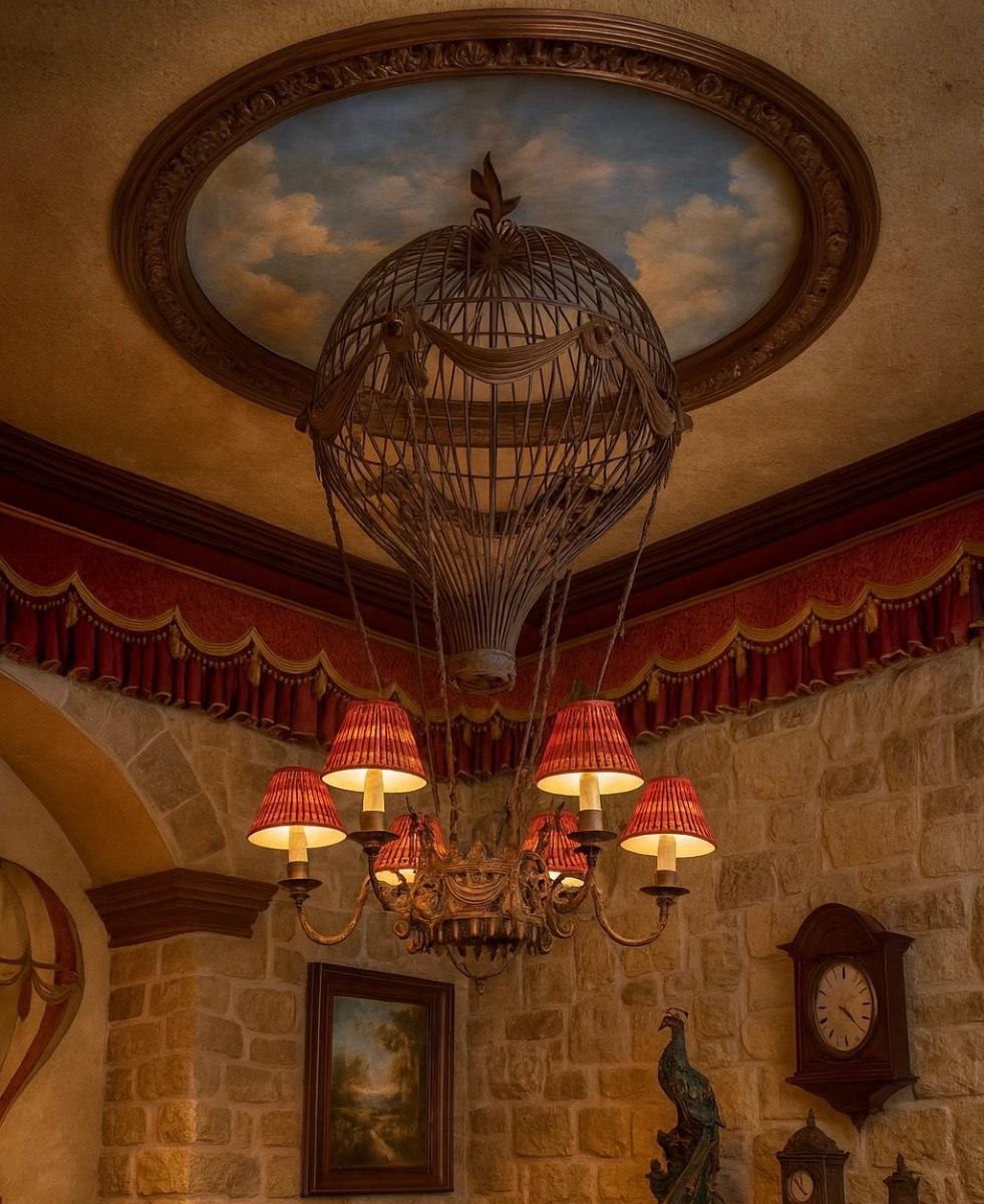Large hot air balloon style chandelier. Measures: 60" high x 28" diameter