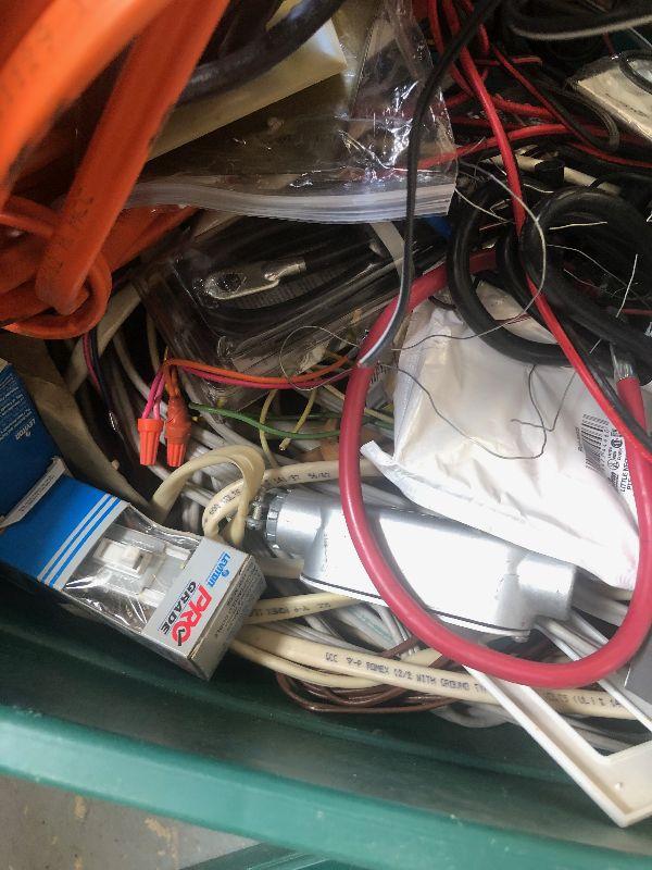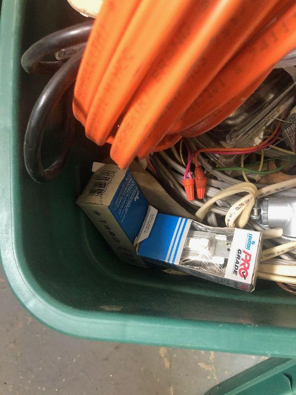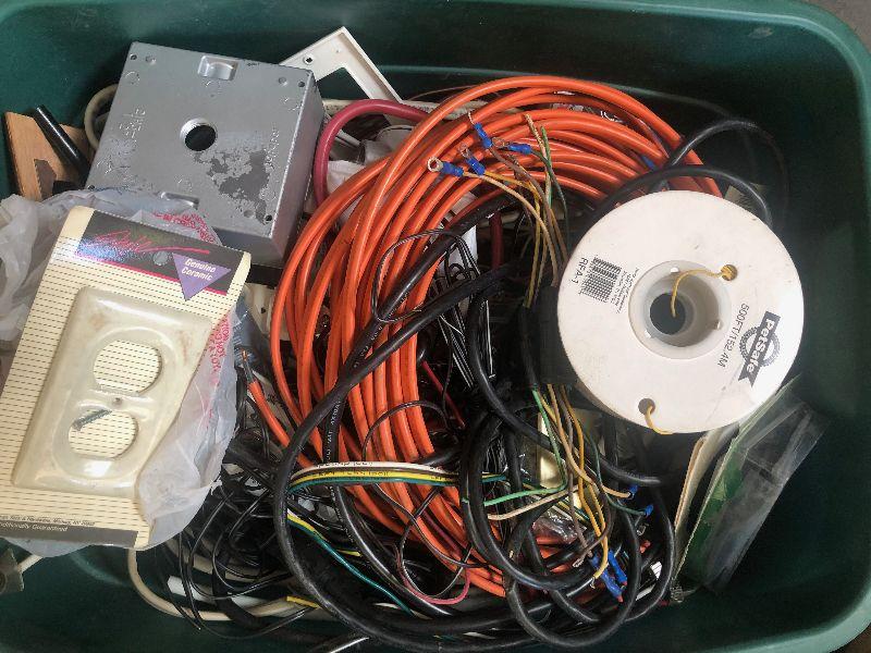 #463 Tub full of Electrical wire, plugs, switches etc.