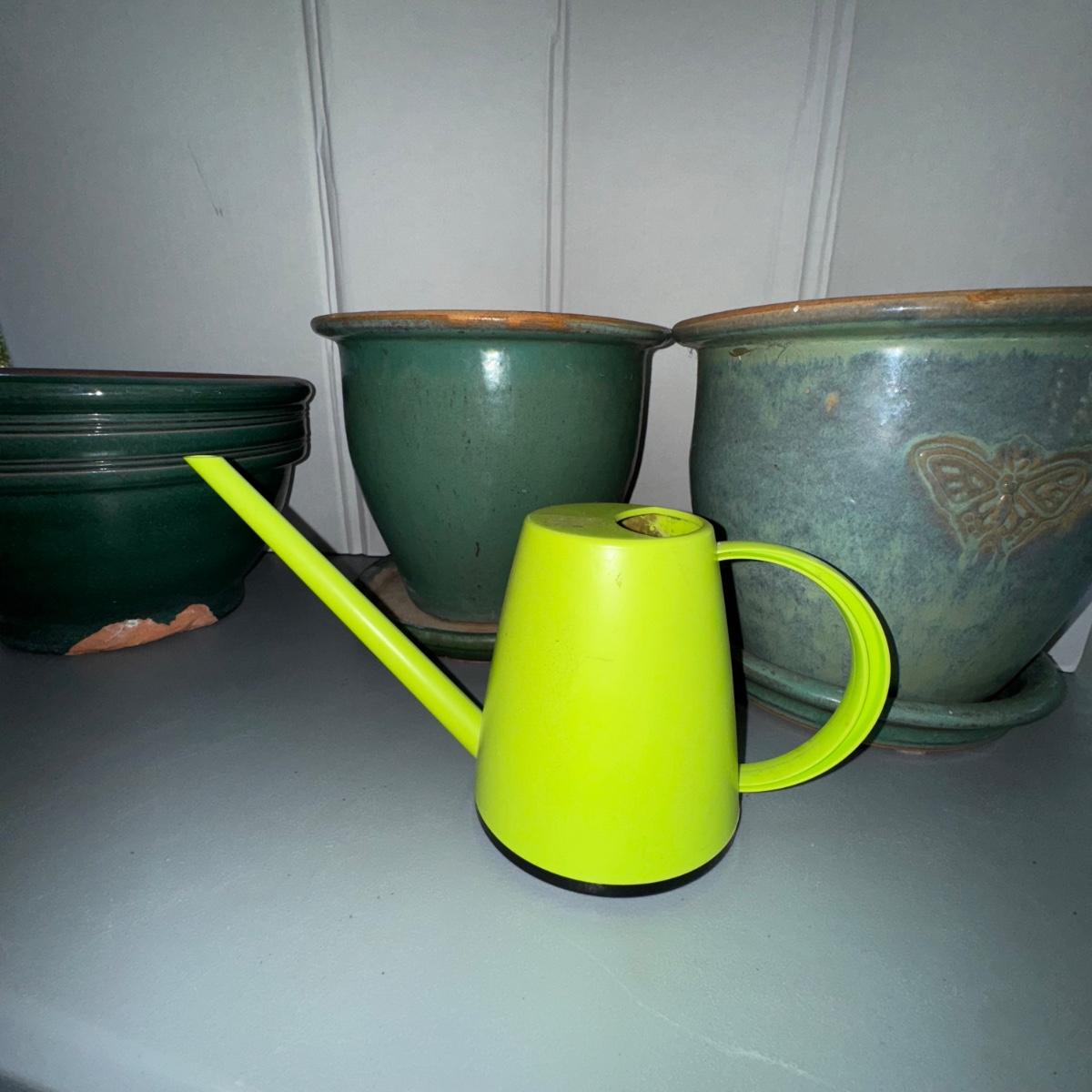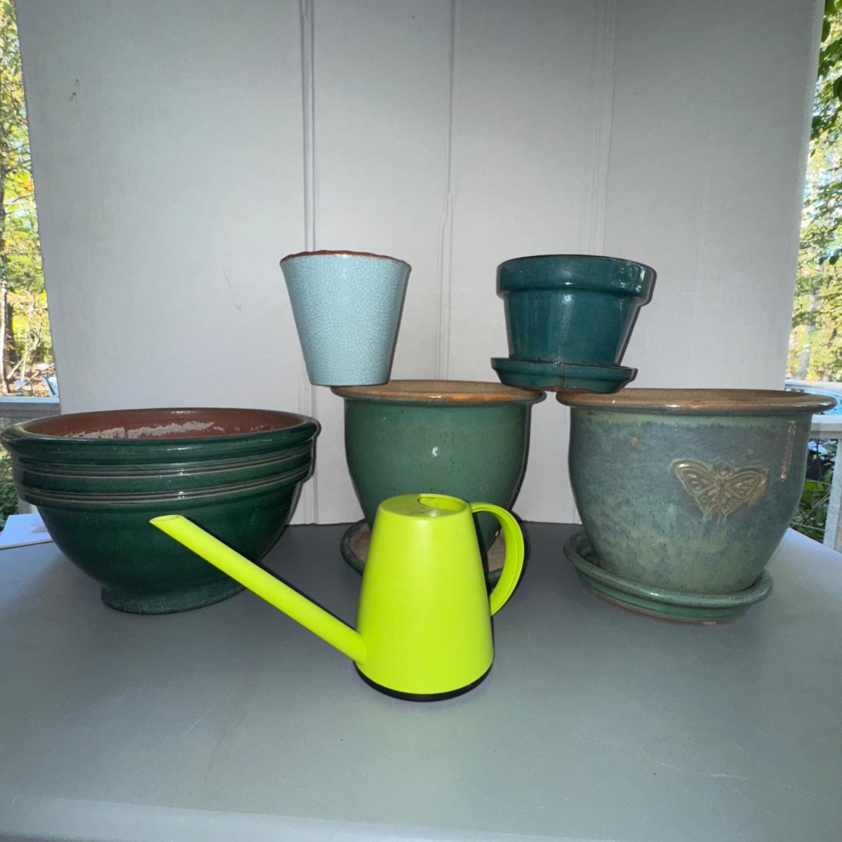466 Green Planter LOT w/Italian Green Watering Can