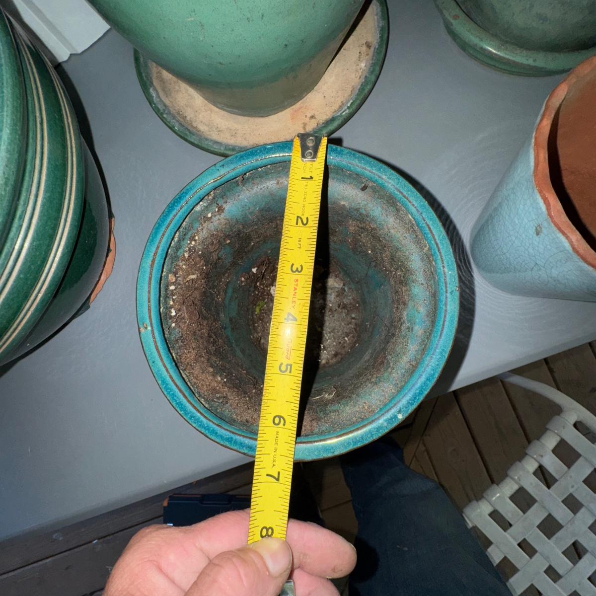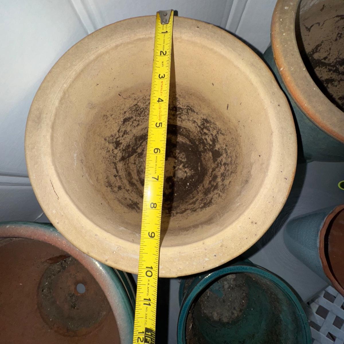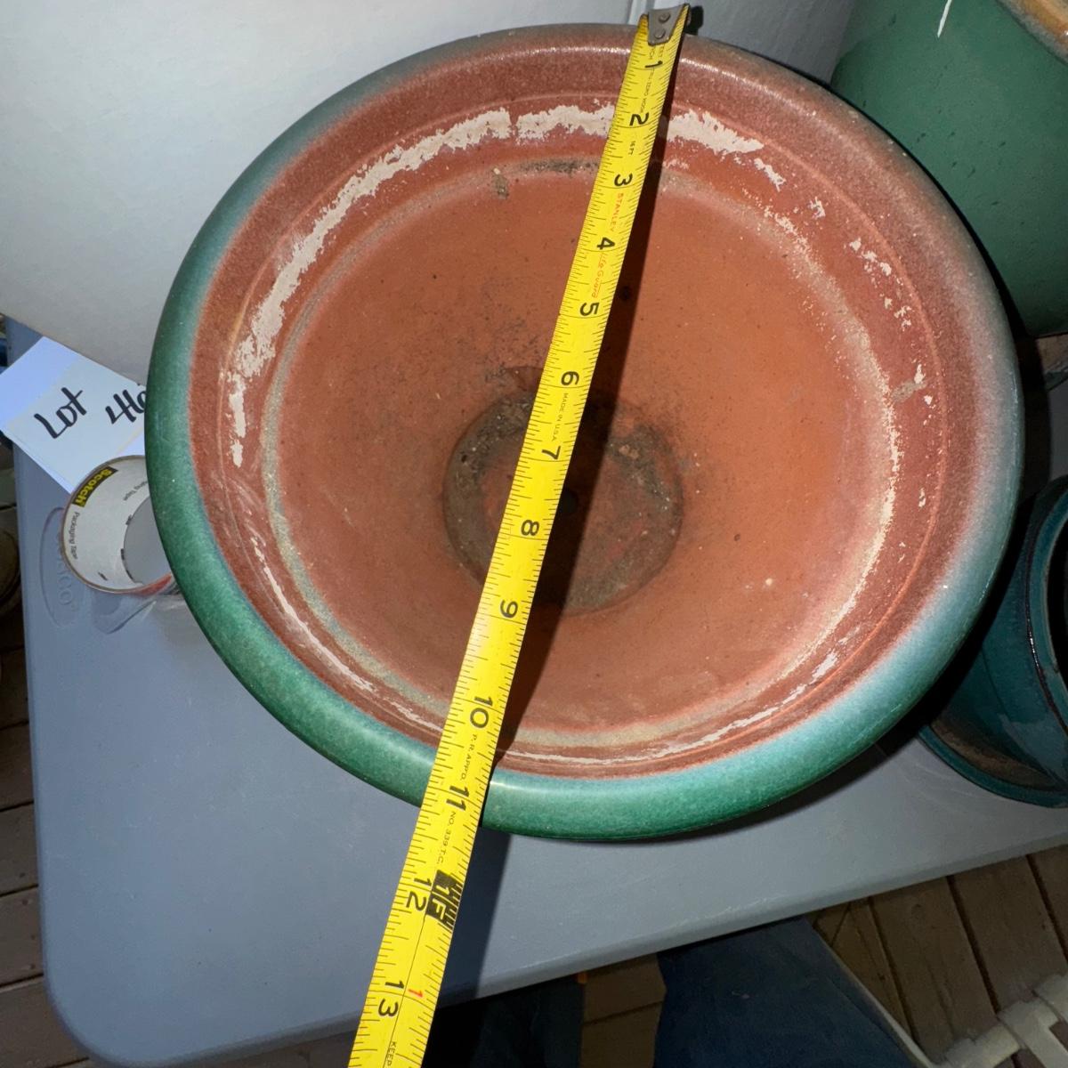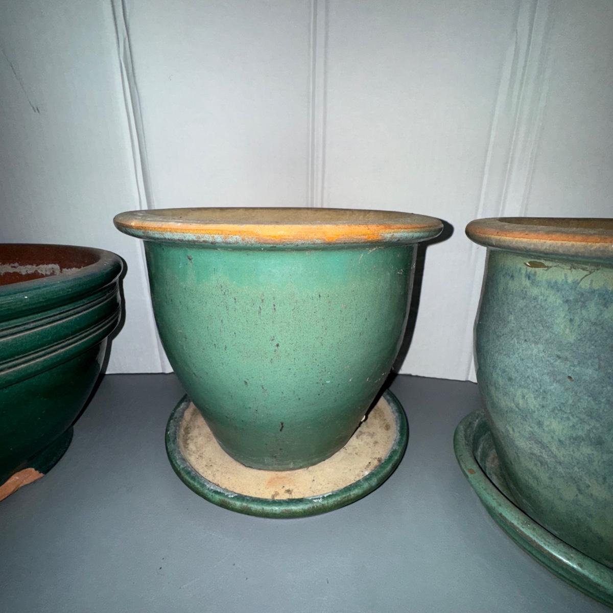 Green Planter LOT w/Italian Green Watering Can. Please see pics for details and sizes. NOTE: one green planter has a cup on the bottom as pictured.