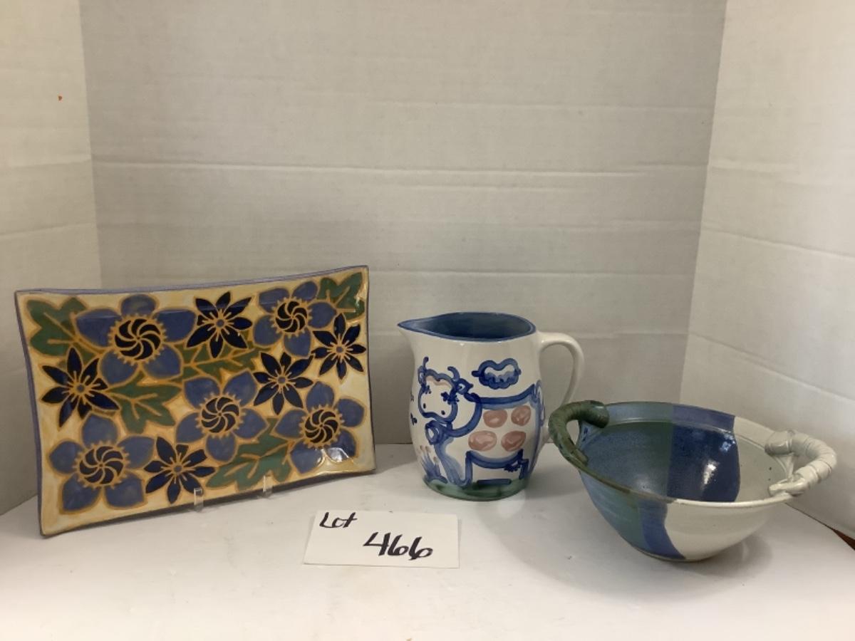 466. Three Piece Pottery Lot ( M.A.Hadley, Sugar Annie, Artisan Signed/Crafted )