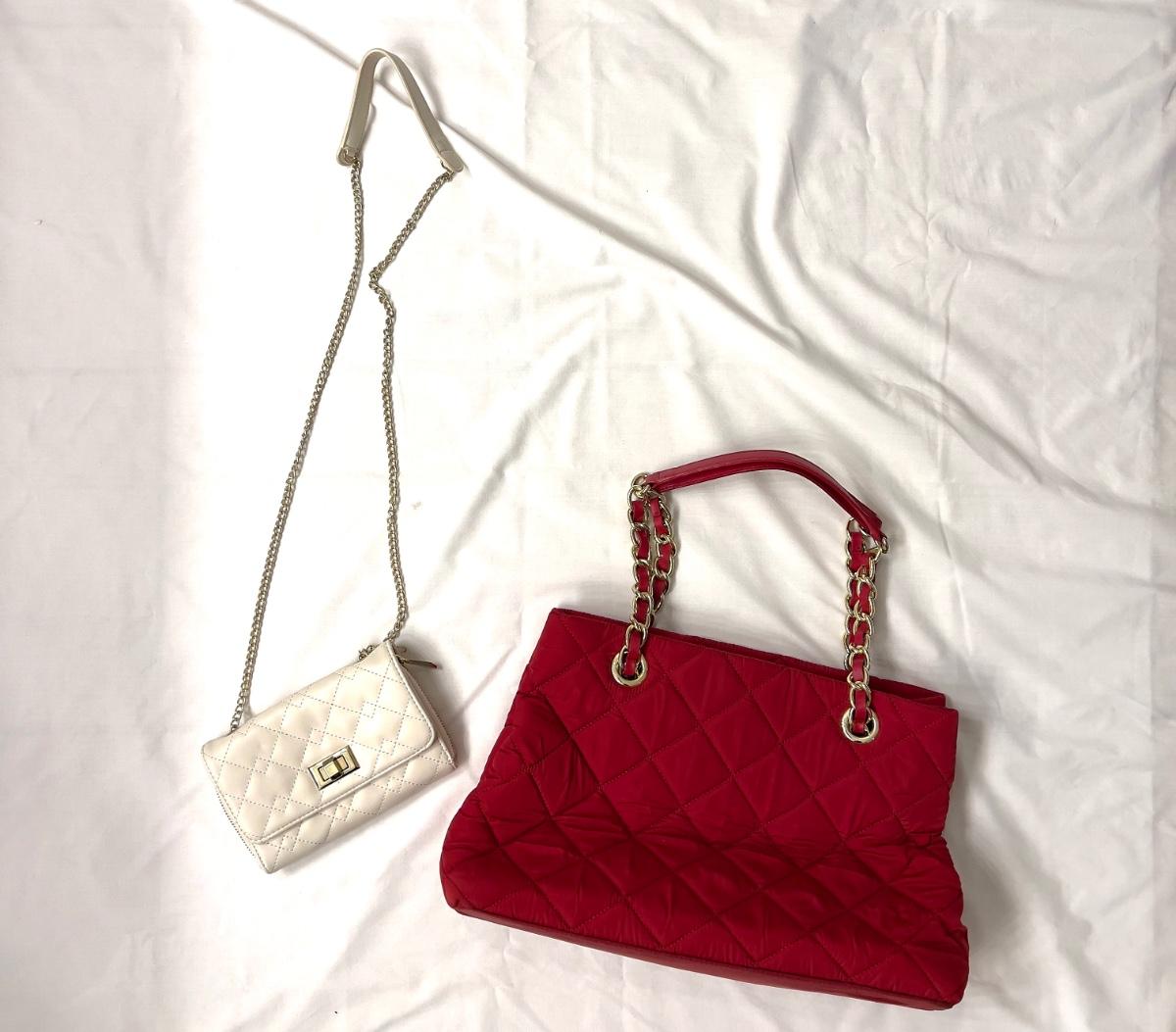 Both have chain style straps and the large red talbots bag measures 10" high x 15" wide