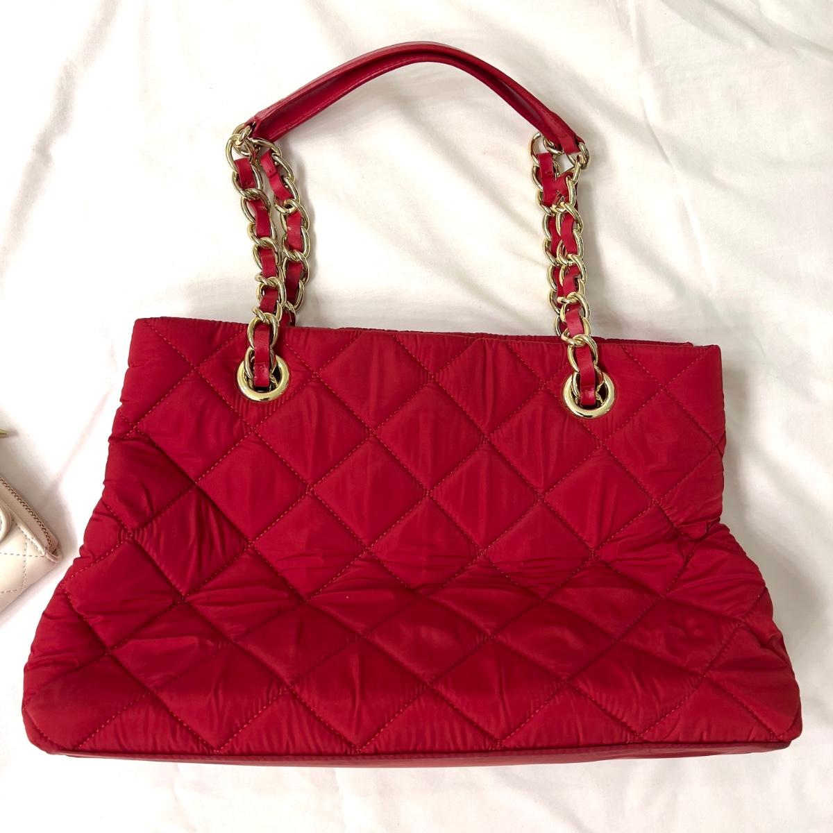 467 Talbots Red Nylon Quilted Bag with White Quilted Bag