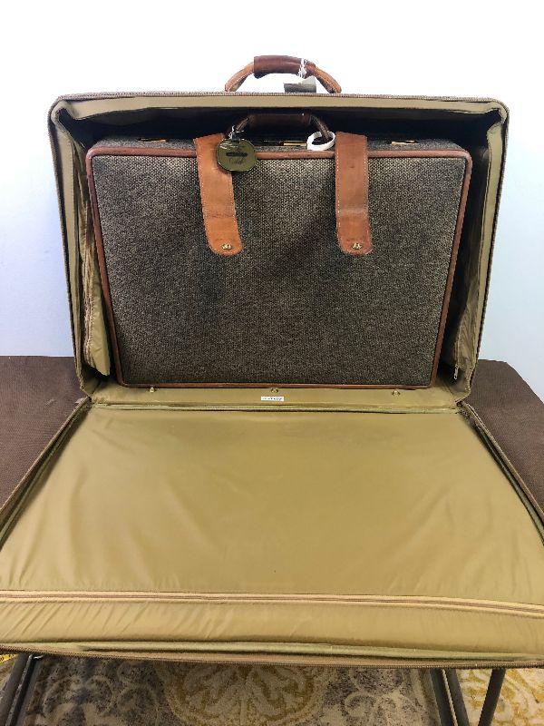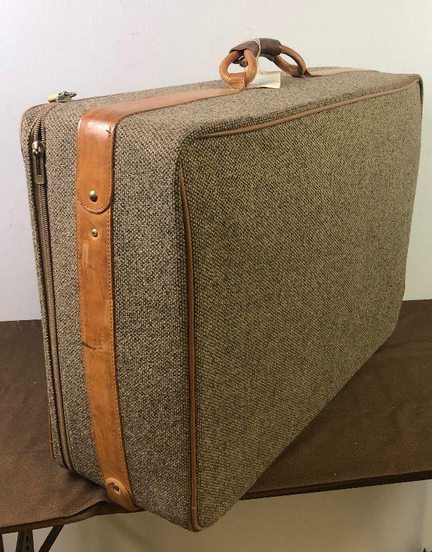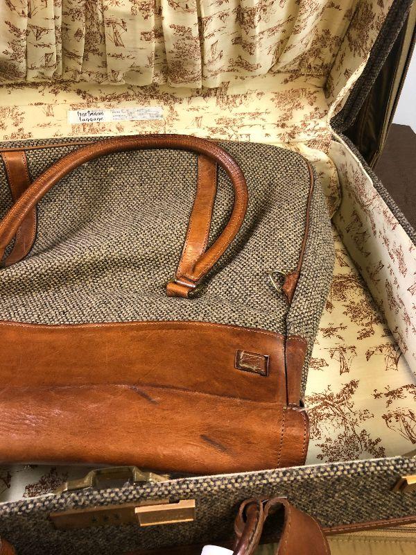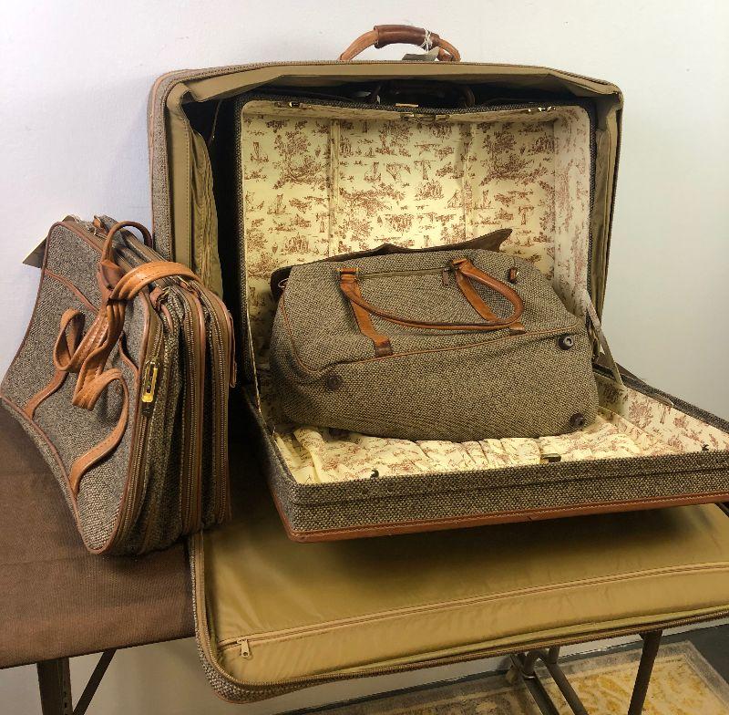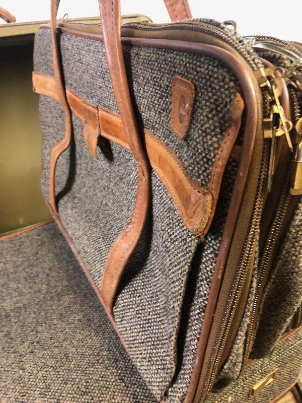 Tweed and Leather - Good Condition. 29x 22 x 10 all stack together inside ea. Other for storage. Shows a little Wear. No Keys!
