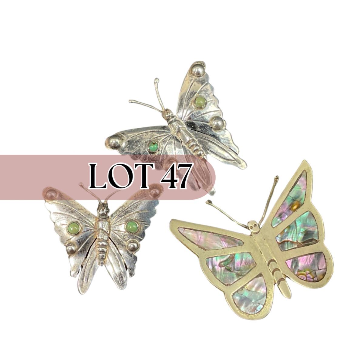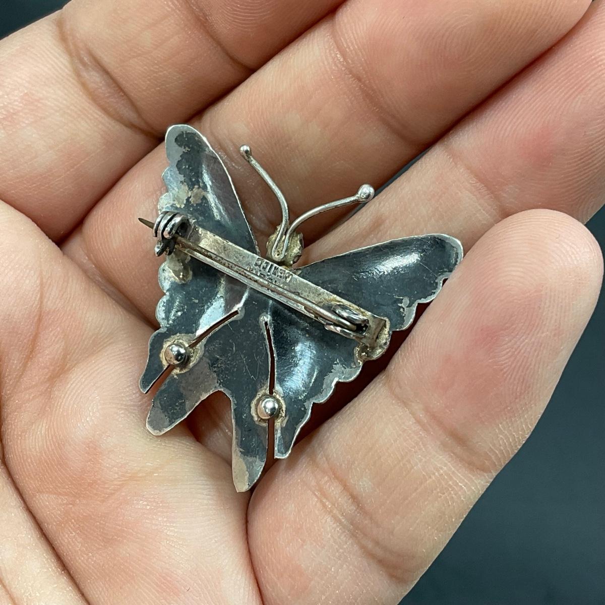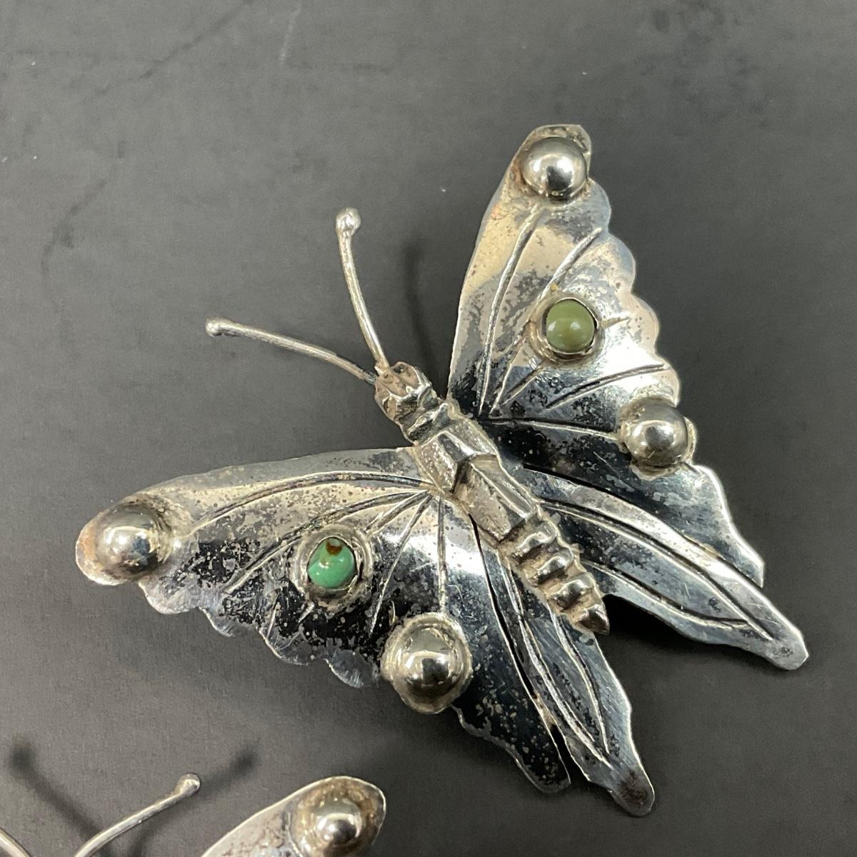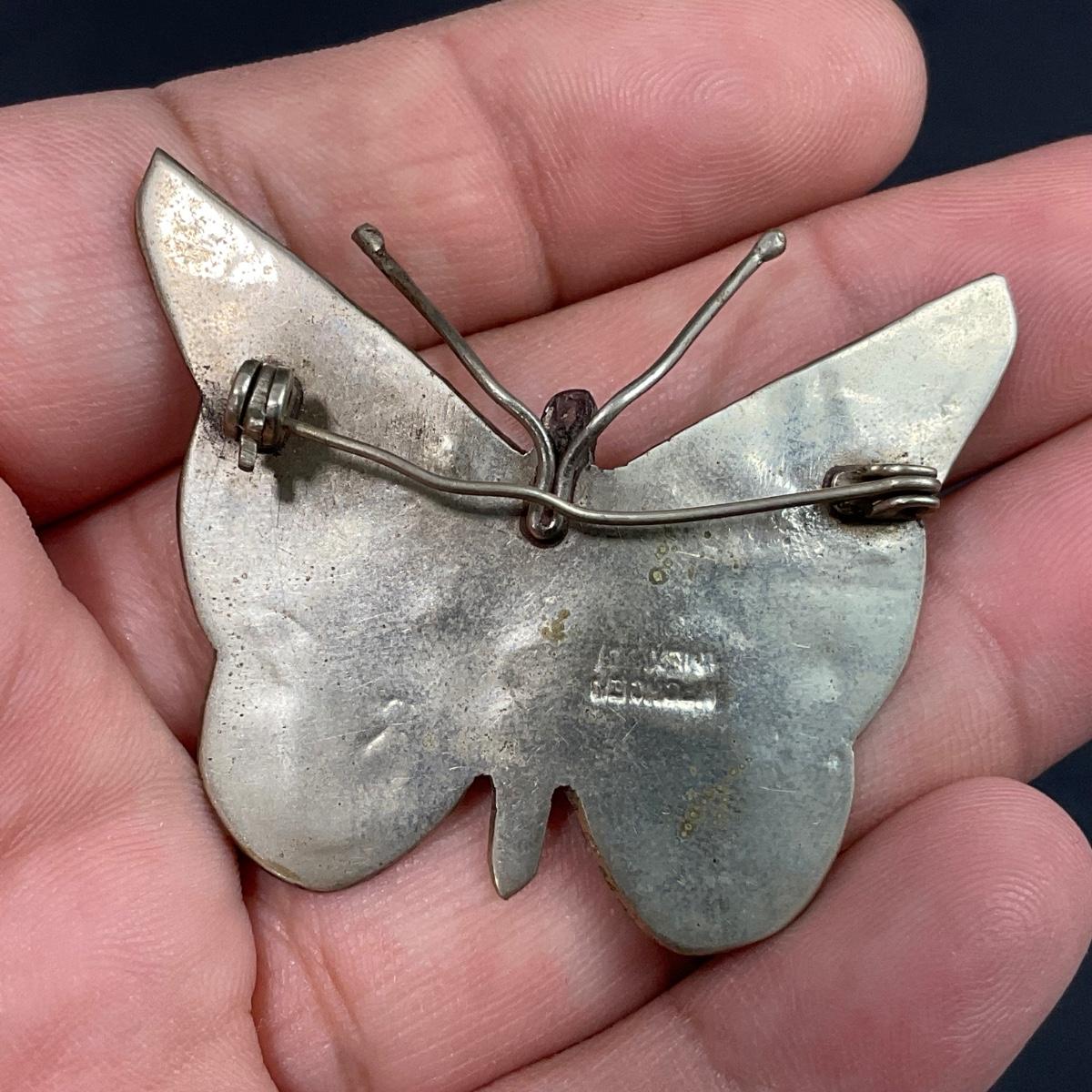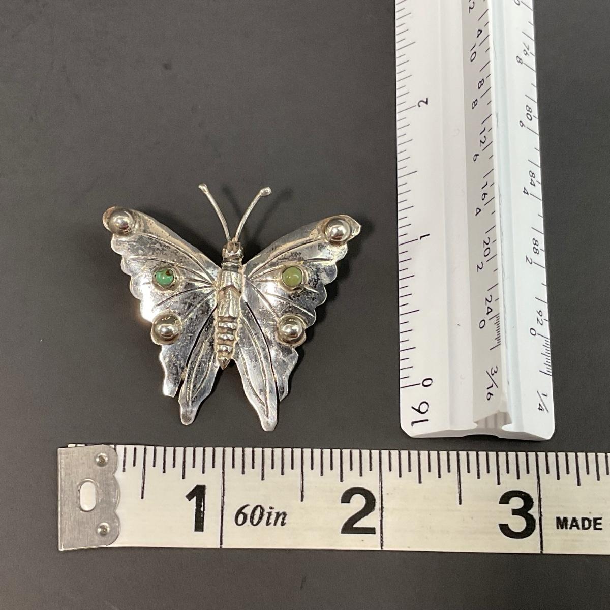 Three vintage sterling butterfly brooches. This piece does have some scuffs, scratches, marks, or slight damage, but otherwise appears to be in great shape. Please see photos for details and condition. Any condition statement is given as a courtesy to a client, is an opinion, and should not be treated as a statement of fact. Reference to condition written, oral or within a condition report shall not be regarded as a full account of condition and may not include all defects, alterations, or restorations. Absence of a condition report does not imply a lot is flawless or lacking imperfections or damage. Katherine’s Auction & Appraisal Service shall have no responsibility for any error or omission. Returns shall not be accepted on the basis of condition. ::: Shipping is available on this lot. If you require shipping you must let us know at the close of the auction. We will coordinate with you after the item has been won. Shipping fees will include insurance up to or exceeding the value of all items being mailed. If you have any questions regarding this lot please contact the auctioneer either via this website, by direct email or by phone. PICK UP TIMES and other important information can be found in the TERMS and DESCRIPTION of the auction. Please take a look for pertinent information. Thanks!