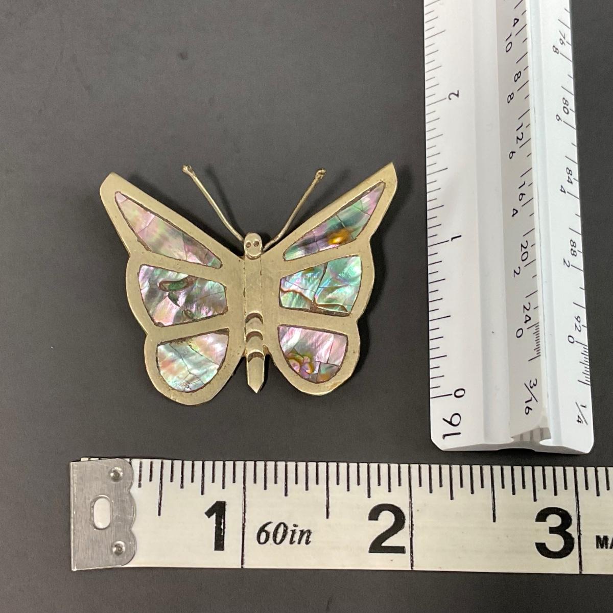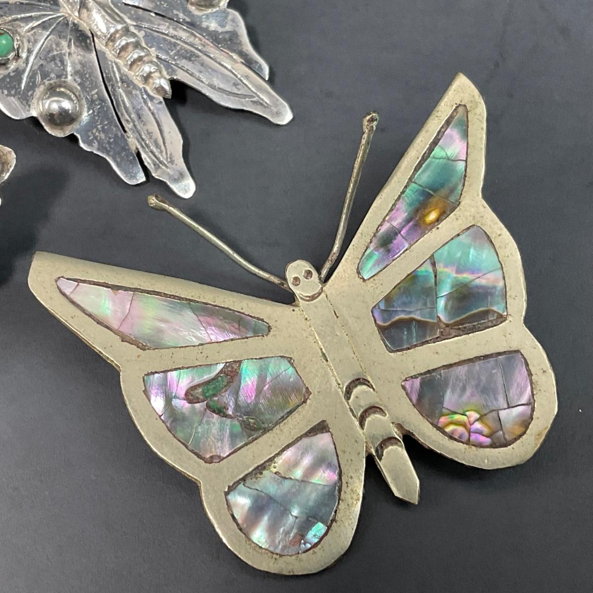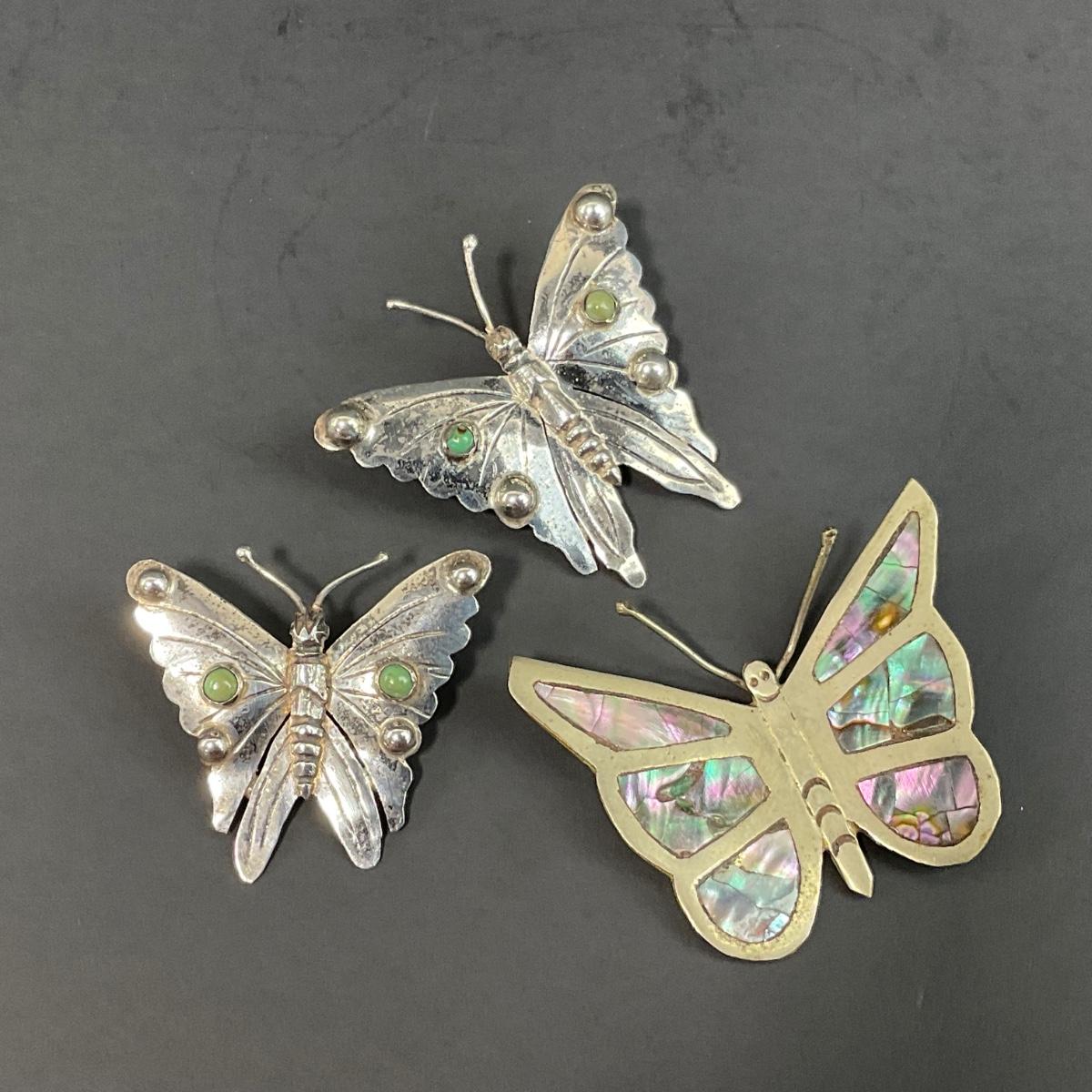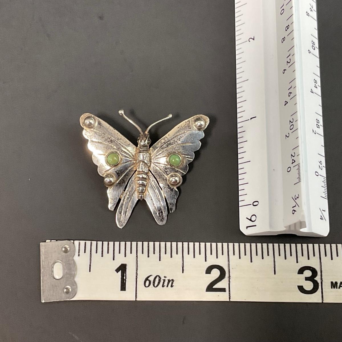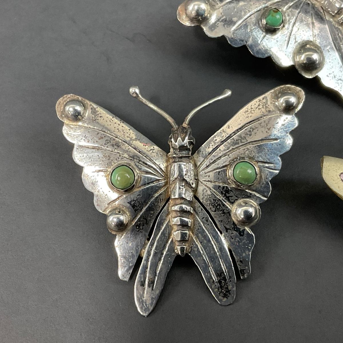Three vintage sterling butterfly brooches. This piece does have some scuffs, scratches, marks, or slight damage, but otherwise appears to be in great shape. Please see photos for details and condition. Any condition statement is given as a courtesy to a client, is an opinion, and should not be treated as a statement of fact. Reference to condition written, oral or within a condition report shall not be regarded as a full account of condition and may not include all defects, alterations, or restorations. Absence of a condition report does not imply a lot is flawless or lacking imperfections or damage. Katherine’s Auction & Appraisal Service shall have no responsibility for any error or omission. Returns shall not be accepted on the basis of condition. ::: Shipping is available on this lot. If you require shipping you must let us know at the close of the auction. We will coordinate with you after the item has been won. Shipping fees will include insurance up to or exceeding the value of all items being mailed. If you have any questions regarding this lot please contact the auctioneer either via this website, by direct email or by phone. PICK UP TIMES and other important information can be found in the TERMS and DESCRIPTION of the auction. Please take a look for pertinent information. Thanks!