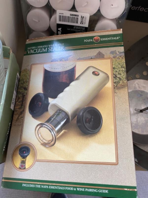 48. Miscellaneous kitchenware, griddle, tins, vacuum sealer, glassware, etc.