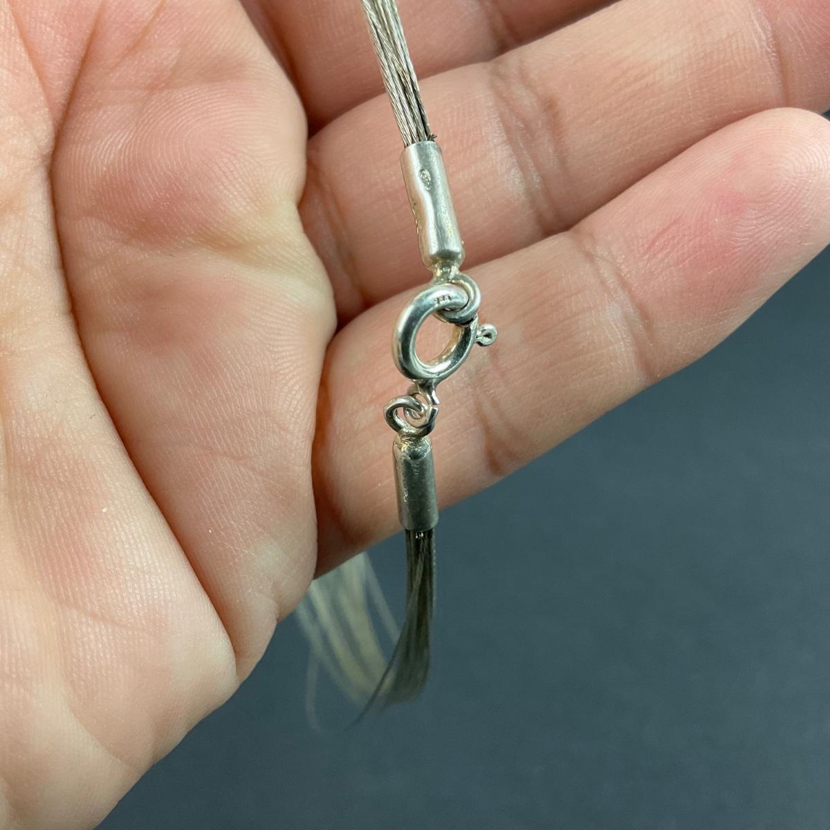 One vintage multi strand sterling silver necklace. Total weight for this piece is 9 grams. Please see photos for details and condition. Any condition statement is given as a courtesy to a client, is an opinion, and should not be treated as a statement of fact. Reference to condition written, oral or within a condition report shall not be regarded as a full account of condition and may not include all defects, alterations, or restorations. Absence of a condition report does not imply a lot is flawless or lacking imperfections or damage. Katherine’s Auction & Appraisal Service shall have no responsibility for any error or omission. Returns shall not be accepted on the basis of condition. ::: Shipping is available on this lot. If you require shipping you must let us know at the close of the auction. We will coordinate with you after the item has been won. Shipping fees will include insurance up to or exceeding the value of all items being mailed. If you have any questions regarding this lot please contact the auctioneer either via this website, by direct email or by phone. PICK UP TIMES and other important information can be found in the TERMS and DESCRIPTION of the auction. Please take a look for pertinent information. Thanks!